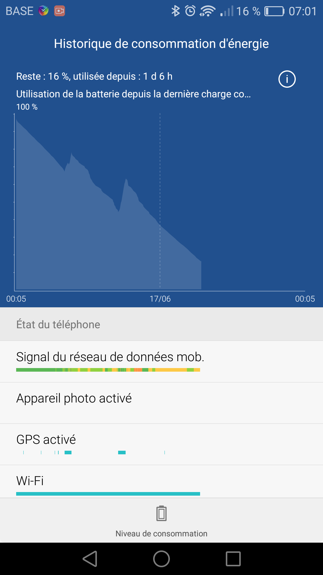 eMotionUI a la particularité d’être très regardant au niveau des apps qui tournent en tâche de fonds. Au lancement de chaque nouvelle app, il va donc vous demander si vous l’autorisez à tourner en tâche de fonds. On est en droit de trouver çà contraignant mais çà a les avantages de ses inconvénients : au prix de ce sacrifice vous ne trouverez pas ici les défauts d’autres mobiles sous Android qui se mettent à consommer comme de gros gorets pour un oui et pour un non. Autrement dit, vous aurez au minimum la maitrise de votre consommation d’énergie. A noter toutefois que les arcanes de l’OS de Google semblent parfois poser problème et que les processus système consomment parfois de l’énergie sans que vous ne puissiez rien y faire. Il m’est ainsi arrivé de voir passer ma batterie de 100% à 55% en l’espace de deux heures. Un redémarre règle le soucis, la plupart du temps mais c’est assez ballot de constater ce genre de choses sur un OS mobile… Notez que ce soucis ne concerne pas spécifiquement le Huawei P9 mais touche de nombreux mobiles sous Android 6. C’était déjà le cas sur les précédentes versions. Google semble avoir optimisé son OS mais certains soucis semblent avoir la dent dure.