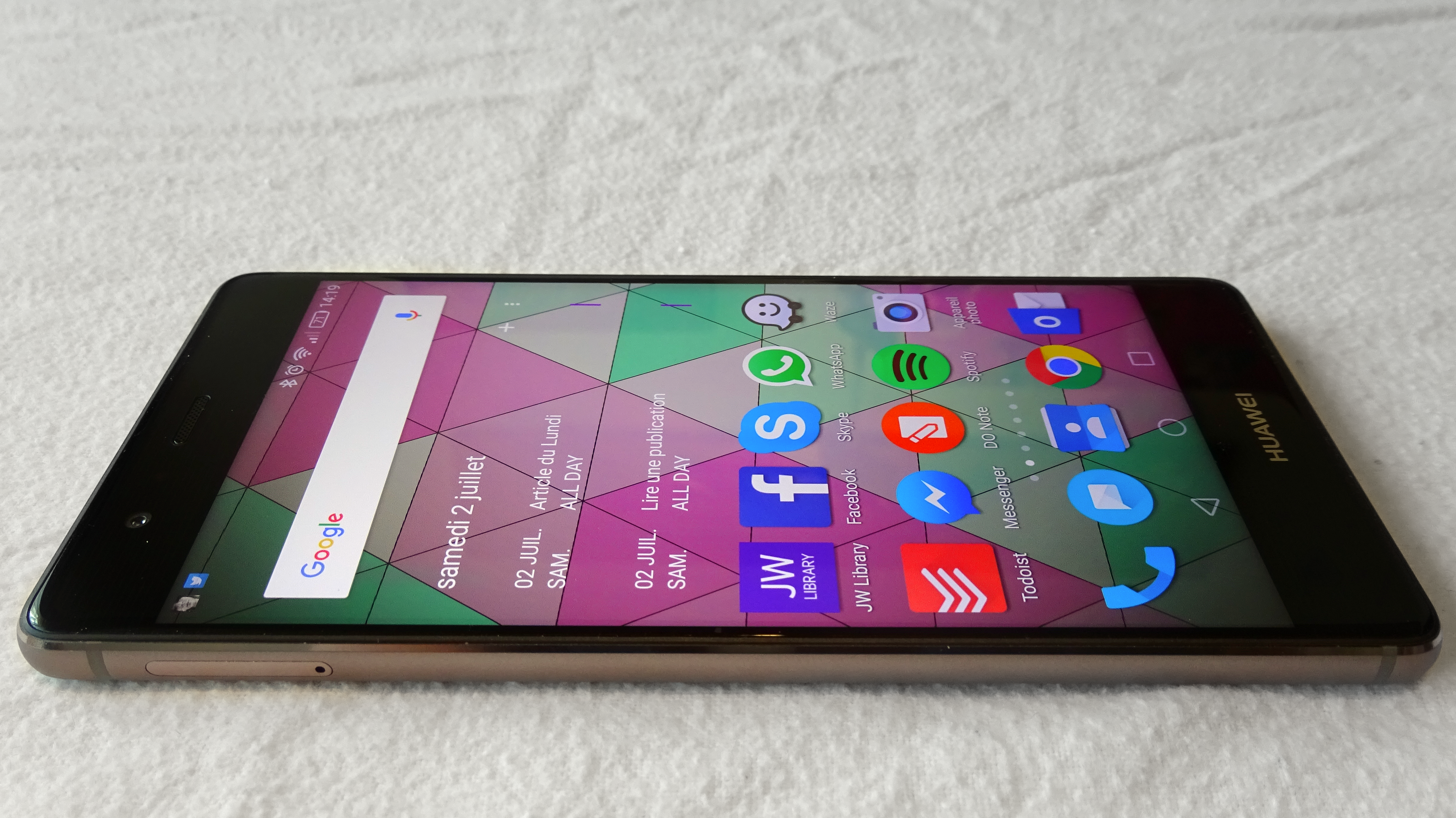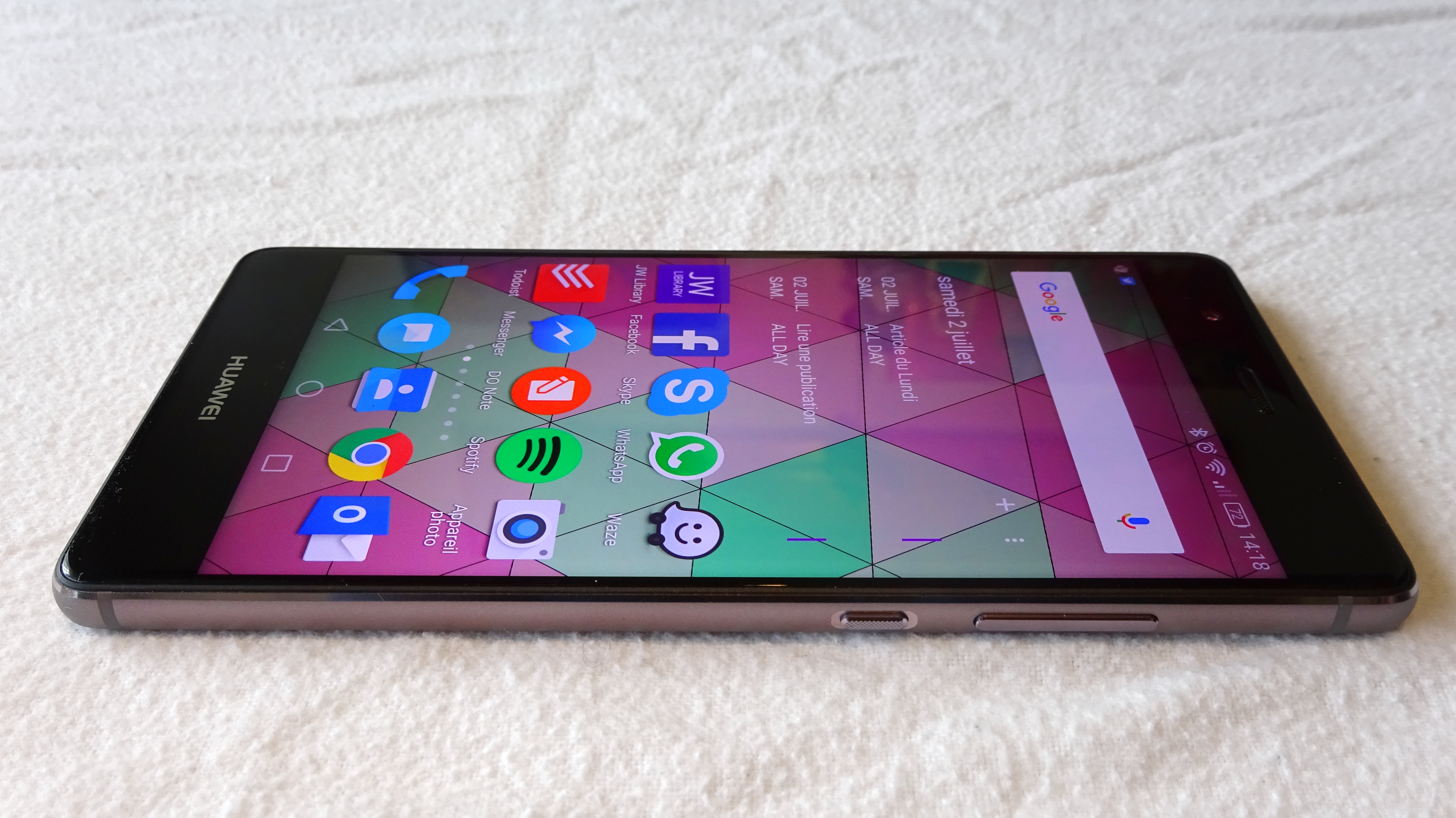 La définition de l’écran est, je le répète, amplement suffisante. La définition FullHD sert bien un écran très saturé qui flatte bien la rétine. Les couleurs sont vraiment agréables et les angles de vision, technologie IPS oblige, sont très importants. Aucune surprise ici : c’était déjà le cas sur le P8 Lite mais le fabricant livre un sans faute sur ce Huawei P9.
