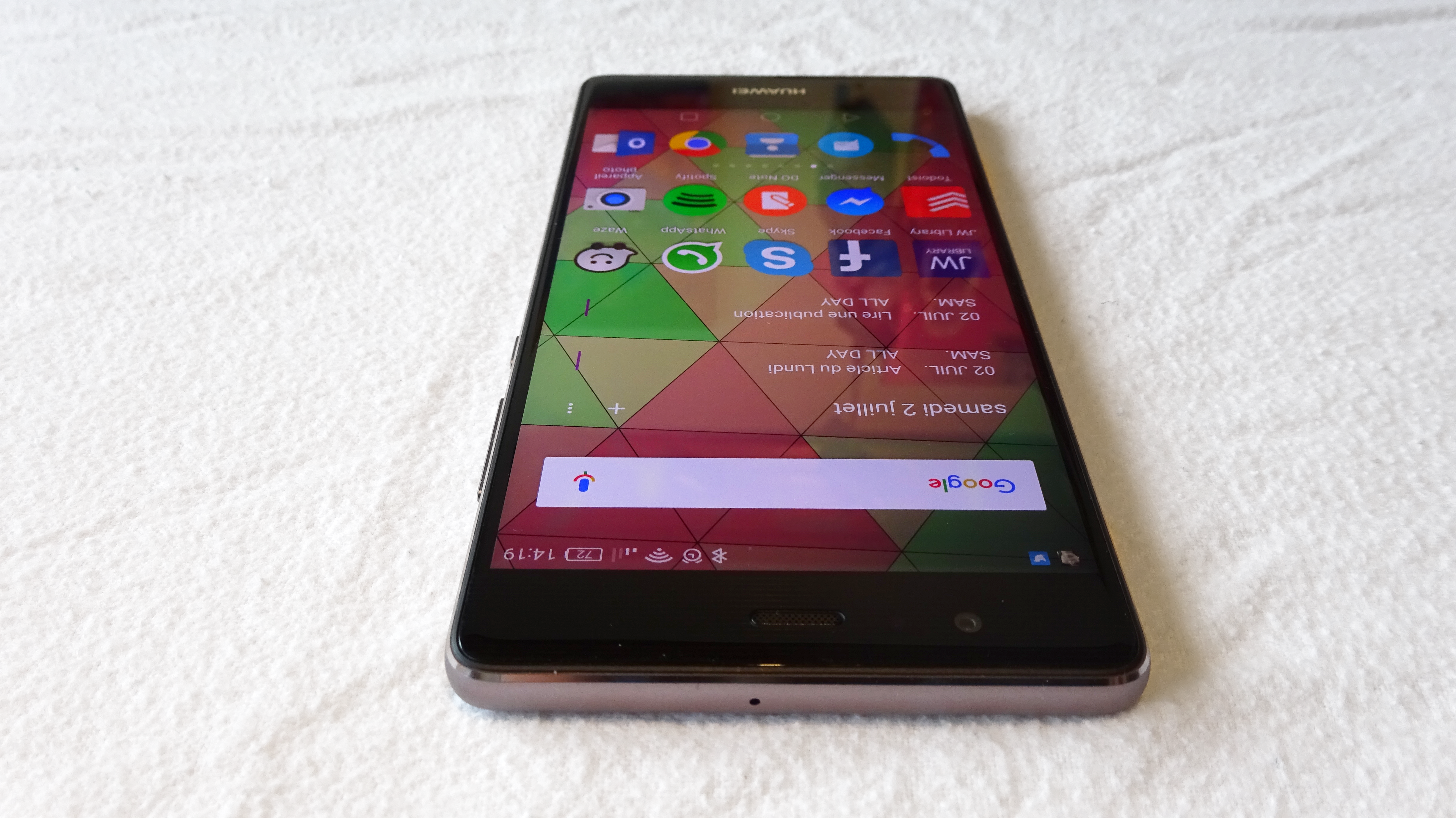 La qualité de fabrication est irréprochable. Ce n’est pas une vue de l’esprit et le matériaux utilisé ici, le métal, n’y est probablement pas étranger. Rien ne craque (encore heureux) et le téléphone garde une légèreté (144 g) et une finesse (6.95 mm) vraiment agréables. En revanche, il présente une prise en main plutôt glissante ! Les personnes qui ont l’habitude de laisser tomber leur téléphone ont vraiment intérêt à faire attention ici ! On fait dans la savonnette, chez Huawei 🙂