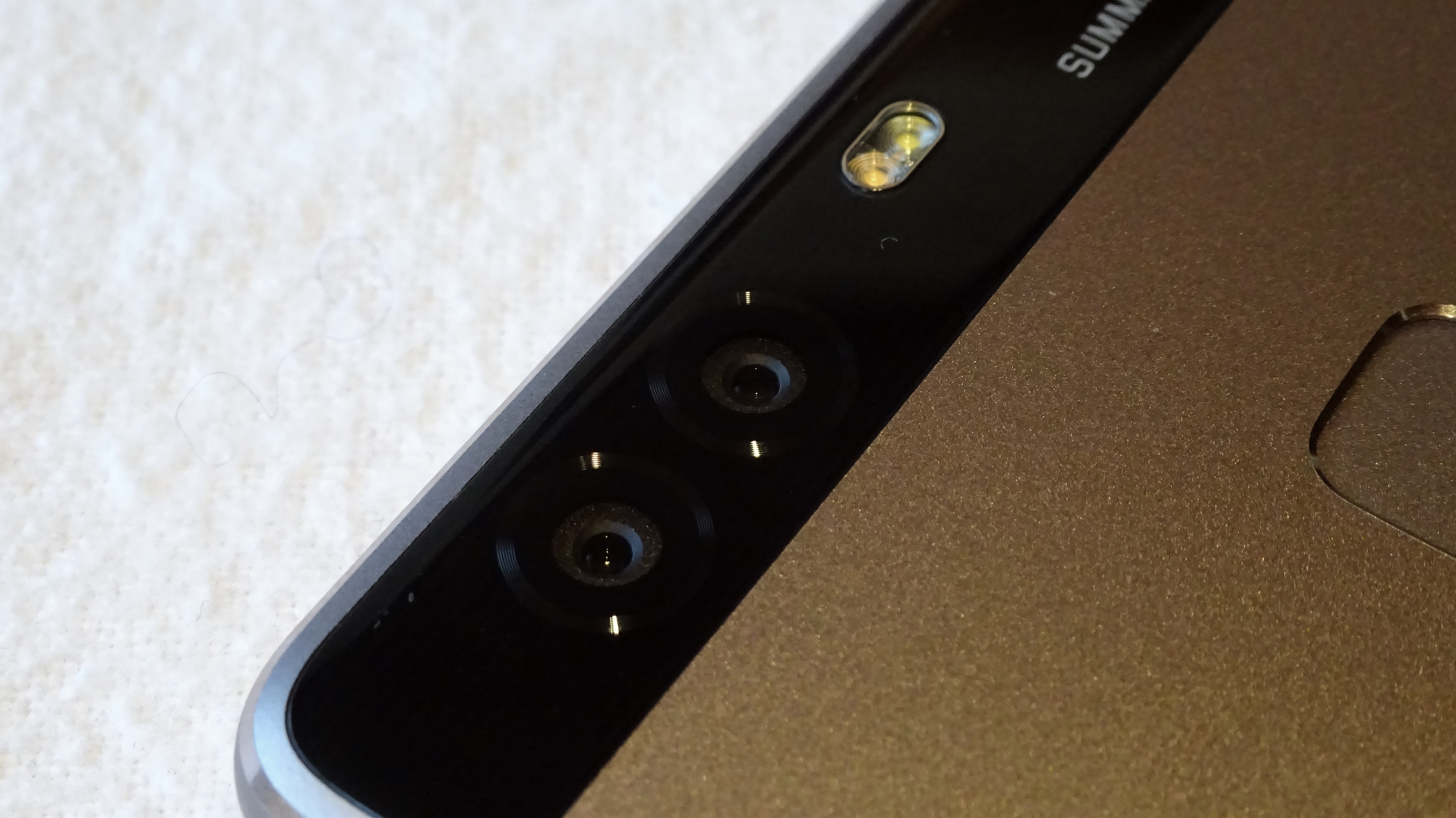 Vous noterez que je n’ai pas parlé du capteur photo. Je vais vous donner ici ses caractéristiques mais nous en parlerons en détail en dessous, dans la mesure où Huawei axe sa communication quasi exclusivement sur cette particularité du Huawei P9. Parce que ce dernier est doté de non pas deux capteurs mais de trois. Deux au dos et un à l’avant. Les deux objectifs dorsaux captent des photos de 12 Mégapixels mais l’un des deux a été développé en partenariat avec Leica, une référence en la matière. Les clichés rendus par cet objectif particulier sont exclusivement en noir et blanc. Ils sont épaulés par un flash double ton pour des couleurs plus vraies que nature sur les photos concernées. Le capteur avant est de 8 Mégapixels.
