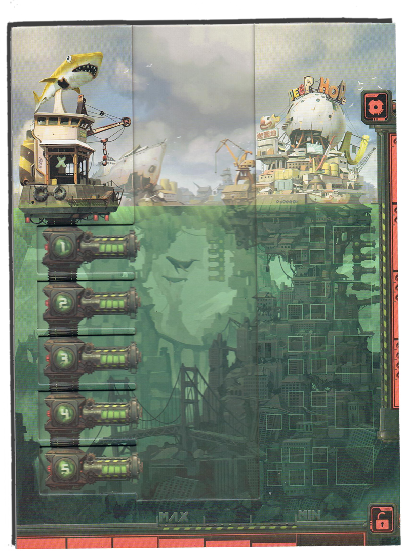 Il y a d’autres subtilité dans le jeu, chaque joueur possede un jeton X, qui peut remplacer n’importe quelle clé, mais cette clé X a pour effet de modifier l’ordre des tuiles sponsor. Lors de votre tour vous pourrez utiliser des jetons batterie, soir pour bouger un plongeur de place, vous pourrez le faire monter ou descendre d’une ligne et plus si vous améliorer votre technicien. Ou vous pourrez utiliser un jeton batterie pour laisser le plongeur utilisé à sa place, il ne remontera donc pas à la surface.