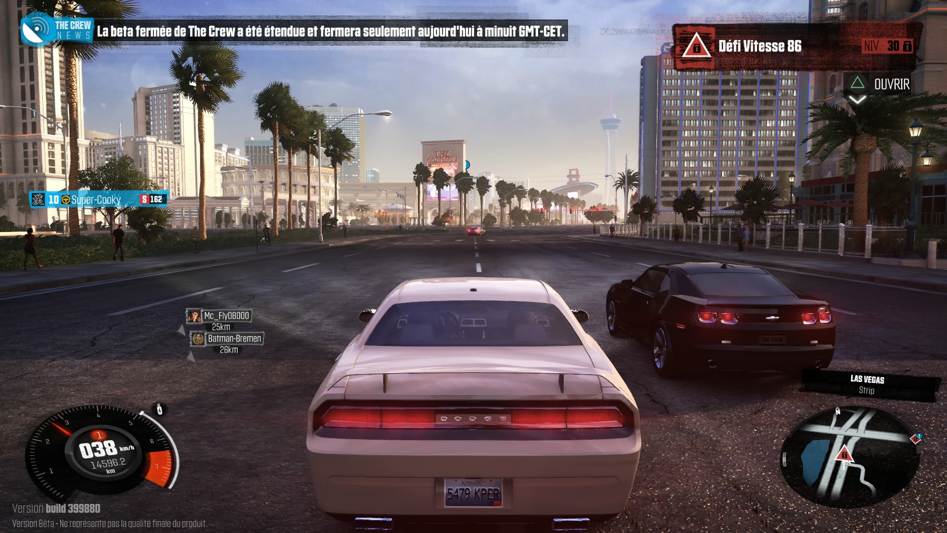 Conclusion, avant la bêta, j’avais un avis assez négatif de The Crew. Le jeu avait su attirer mon attention lors de sa présentation en 2013, principalement par l’immensité de sa map. Mais les nombreux reports de la date de sortie et les plusieurs phases de test me faisait craindre pour la qualité du jeu. J’ai eu la chance de participer à la bêta fermée avec des amis et c’est là où le jeu révèle sa plus grande qualité. A l’instar de GTA Online, pouvoir parcourir les USA au volant de voitures magnifiques avec des amis s’avère incroyablement fun. On se donne rendez-vous à New-York et on trace la route direction la Californie ! N’est-ce pas un fantasme pour de nombreuses personnes ? Vous l’auriez compris, cette bêta m’a fait changer d’avis sur le jeu. Le fun entre pote que le jeu procure est cool. De bons délires en perspective ! Préparez-vous pour un road trip à travers les États-Unis, le jeu sera disponible le 2 décembre sur PC, PS4, Xbox One et 360.