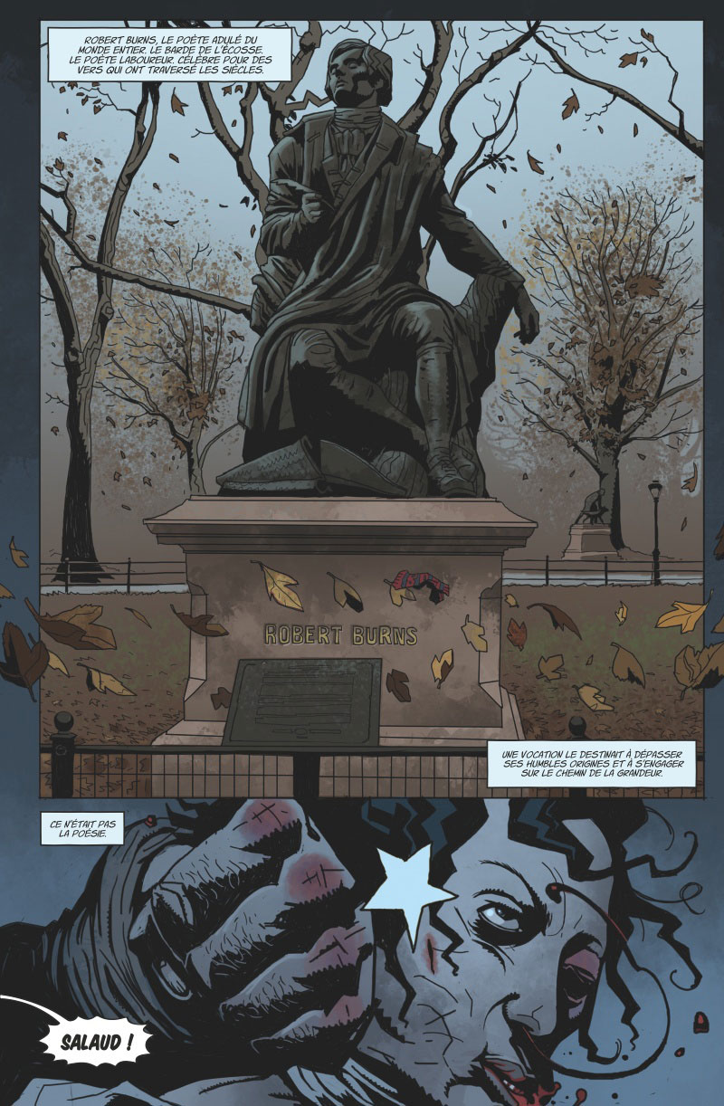 Robbie Burns nous emmène en pleine chasse aux sorcières, publié chez Glénat Comics ce livre a été une bonne surprise . Mais avant de vous parlez de ce comics, je tenais à faire un petit point sur robert Burns (dit Robbie Burns), un célèbre poète écossais surnommé « Scotland’s favorite son » (comprenez le fils préféré de l’écosse). Né en 1759, il décédera à l’âge de 37 ans, il restera néanmoins un très grand poète de l’ère romantique, ses textes resterons dans les mémoires et certains chants comme Scots Wha Hae résonnent encore dans l’esprit de chaque écossais ! Et pour cette fois-ci je vous conseille lancé la petit musique ci-dessus pour vous imprégner de l’esprit en lisant ce post..