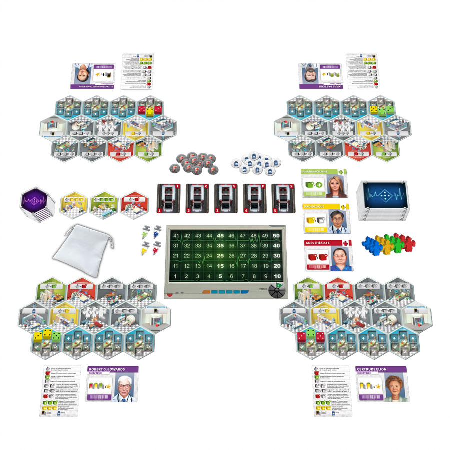 Dice Hospital est un jeu de Mike Nudd et Stan Kordonskiy, édité par Super Meeple, pour 1 à 4 joueurs, pour des parties de 45 à 90 minutes.