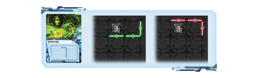- Exécuter un programme générique : pour cet action il suffit de prendre une carte de programme générique parmi les 4 disponibles et d’appliquer son action. Vous pourrez déplacer des points d’accès, échanger des points d’accès, déplacer des barrières, poser des barrières, soit librement, soit en suivant le schéma présent sur la carte.