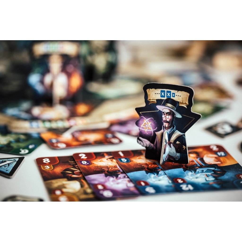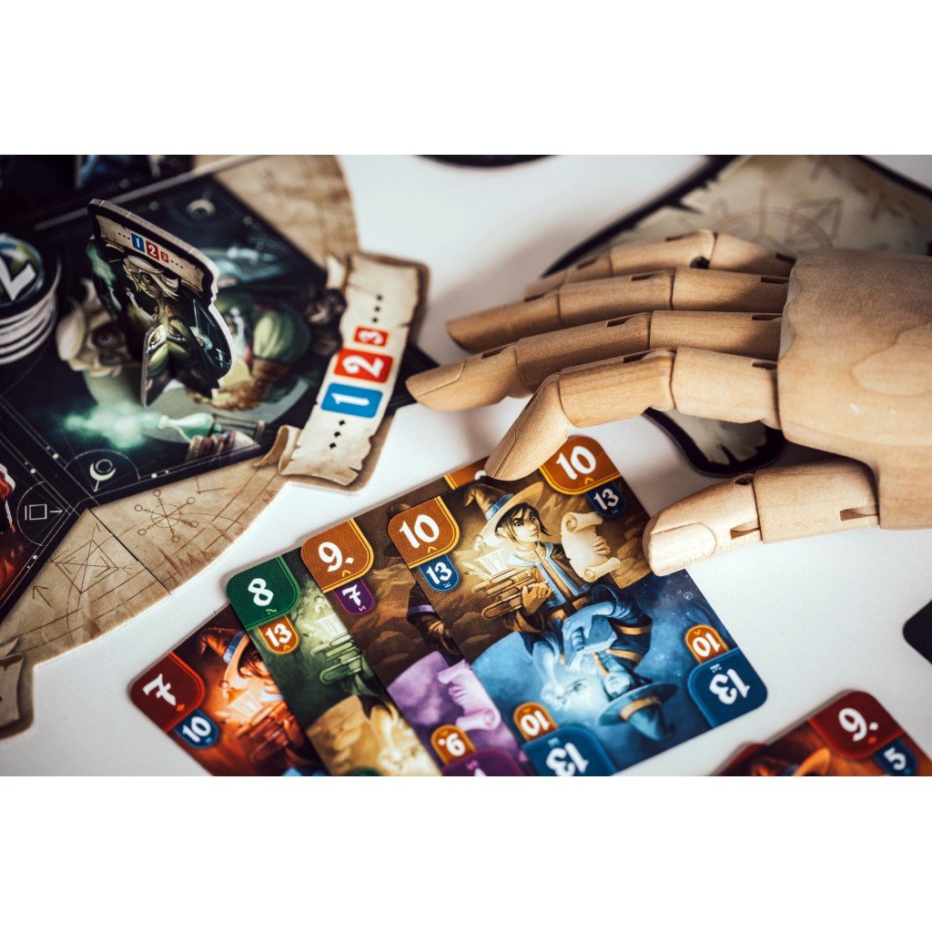 Une manche prend fin de 2 manières différentes, soit 3 piles d’objets magiques sont vides, et là c’est le joueur qui totalise le plus de points avec ces objets qui remporte la manche. Soit un joueur a réussi à prendre 5 objets magiques différents, et la il remporte la manche directement.