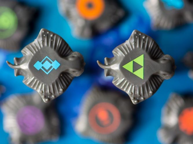 Un autre moyen de gagner des points, c’est les objectifs sur le plateau, lorsque vous remplissez les conditions d’un objectif (ex : avoir 5 lieux sur votre plateau), vous devez placer et donc perdre une manta de votre couleur sur l’emplacement disponible le plus à gauche. Si vous êtes le premier à remplir l’objectif, vous marquez 8 points, si vous êtes le deuxième 5 points, et après c’est 3 points.