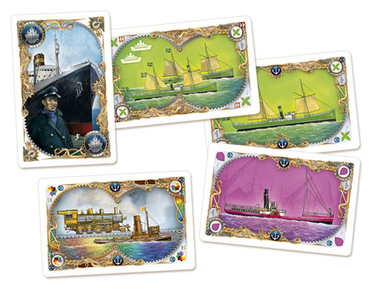 La grande nouveauté ici reste les ports. Vous avez la possibilité de construire des ports, chaque joueur en a 3 en début de partie, et chaque port non construit en fin de partie fait perdre 4 points de victoire. Pour construire un port, il faut dans un premier temps avoir au moins une route qui mène à ce port. Ensuite il vous faut défausser 2 cartes bateau et 2 cartes wagon de même couleur, et il faut que les 4 cartes aient un symbole de port (ancre). Donc non ce n’est pas super simple.