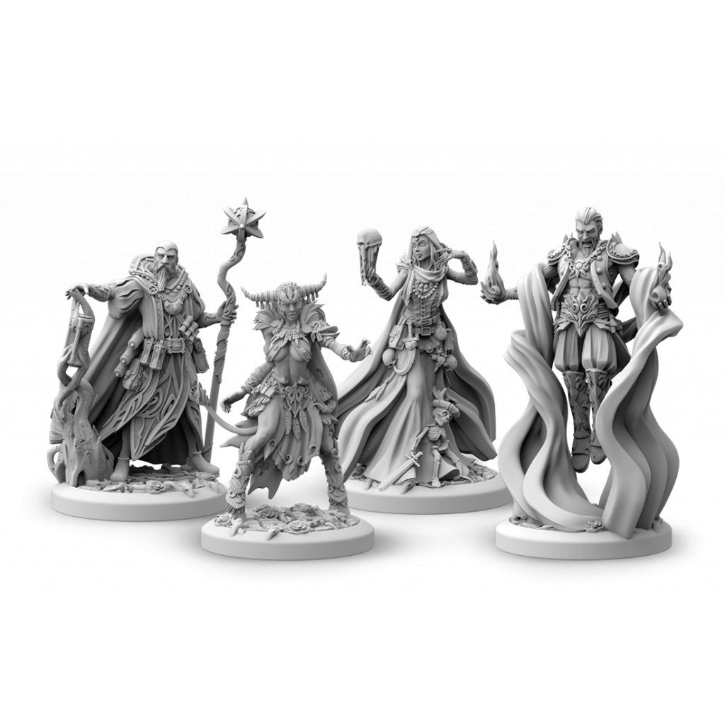 - Phase d’Évocation : s’il y a des Évocation en jeu, chaque joueur dans l’ordre du tour va pouvoir les activer. Les Évocations se déplacent et attaquent les figurines qui se trouvent sur leur case.