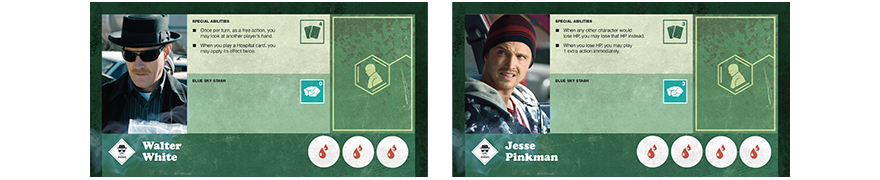 • Occuper une labo : il y a des laboratoire, pour fabriquer de la Blue Sky, et pour produire de la Blue Sky il faut des chimistes, donc avec cette action vous pouvez placer un chimiste dans un labo, et ainsi produire immédiatement de la Blue Sky. Il est possible d’occuper un labo d’une autre faction, mais pour ça il va falloir négocier, et faire profiter de votre production à la concurrence.
