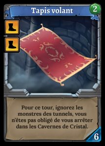 Chaque joueur débute le jeu avec son deck de départ de 10 cartes (le même pour tout le monde), le joueur actif pioche 5 cartes et joue la totalité de sa main. Vos cartes vous permettront de vous déplacer dans les souterrains, de poutrer des monstres, et d’acquérir de nouvelles cartes, qui viendront enrichir votre deck de base. Ainsi au fur et à mesure de la partie, votre deck grossira, et deviendra de plus en plus balaise, avec des effets de cartes puissant.