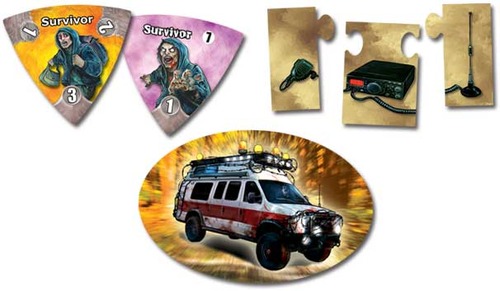 Les survivants qui détiennent les 3 composants de la radio sont mélangés dans le sac en tissu qui contient les zombies, pour peu que vous ayez de la chance, si vous tirez rapidement les survivants, vous choperez les composants de la radio très rapidement. Mais si comme moi vous n’avez pas de chance, vous ne tirerez les survivants qu’en dernier, et la c’est moche, donc la difficulté est aléatoire, comme le jeu d’ailleurs.