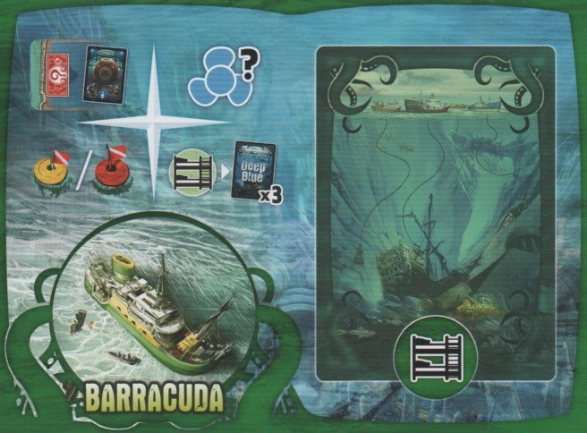 - Naviguer : en jouant une carte de votre main portant une icône d’hélice, vous allez déplacer votre bateau sur le plateau. Si vous vous déplacez sur une tuile épave visible, vous placez votre bateau sur un des 3 emplacements bonus. Ces bonus vous aident lors de votre plongée. Si vous arrivez sur une tuile épave face cachée, et bien vous la retournez et vous placez votre bateau sur un emplacement bonus.