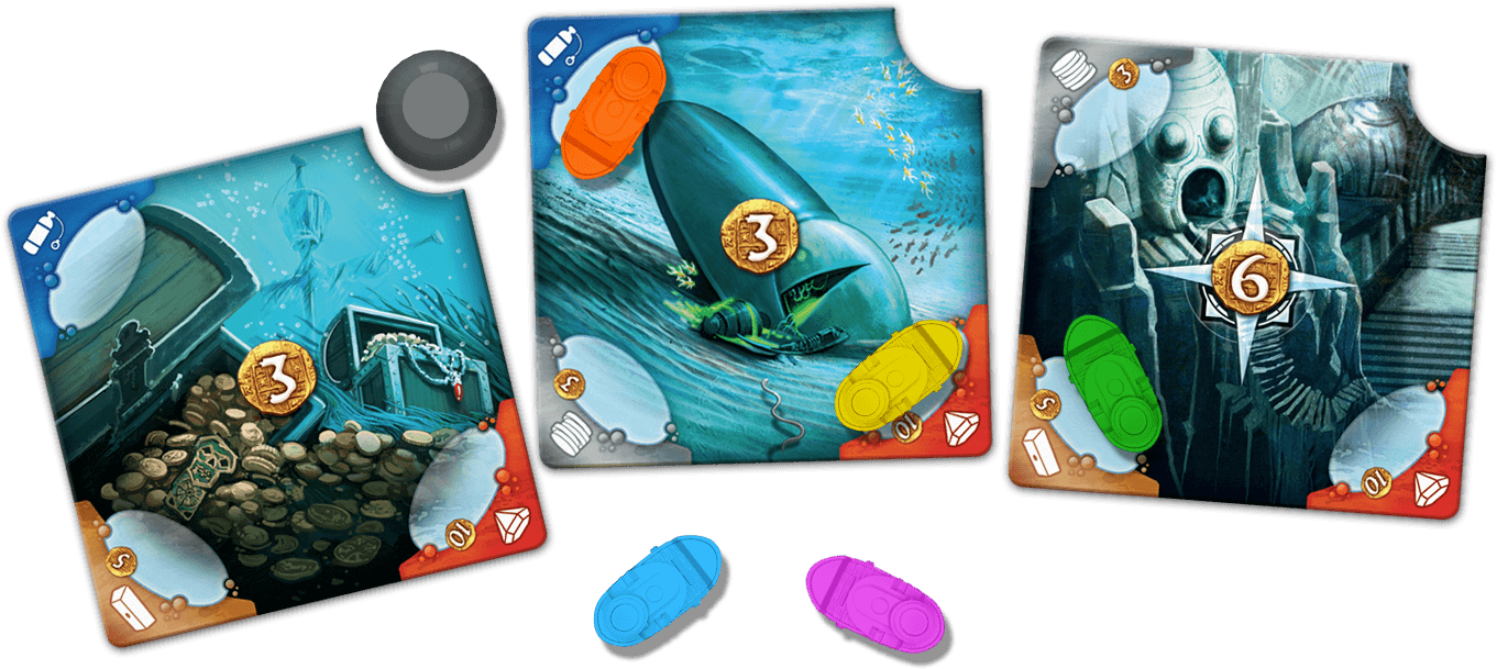 Lorsqu’une plongée est terminée, on retire la tuile du plateau, sauf si la tuile en question est une des 4 tuiles de la cité engloutie. La tuile est alors placée sur l’emplacement dédié sur le plateau de jeu.