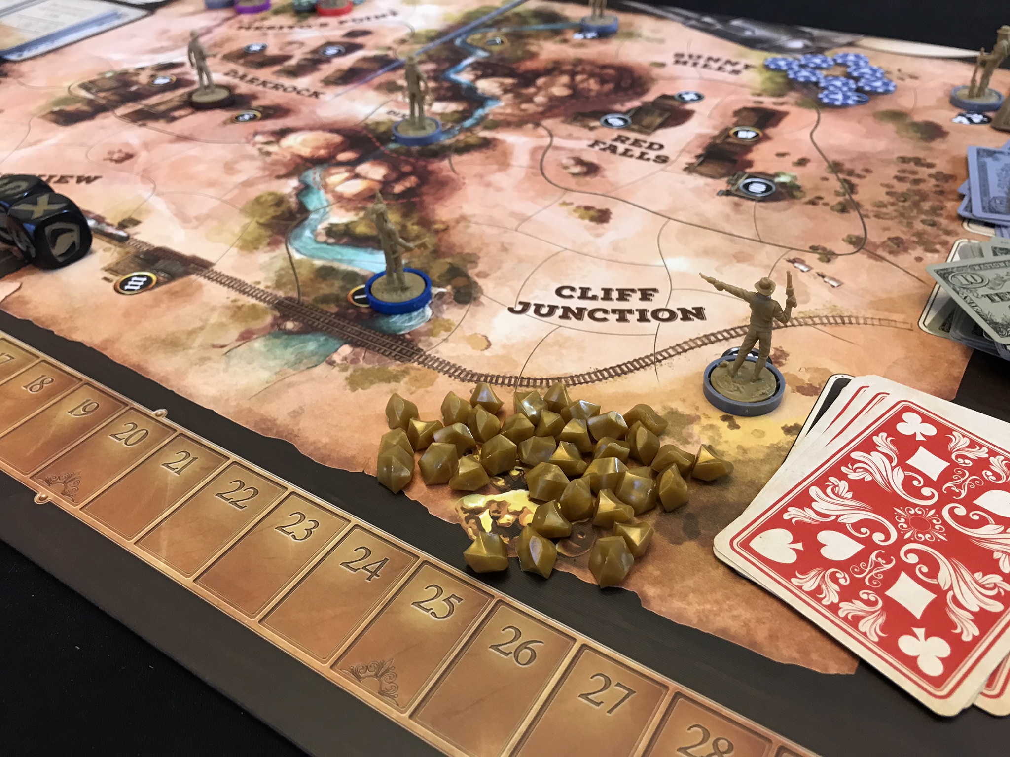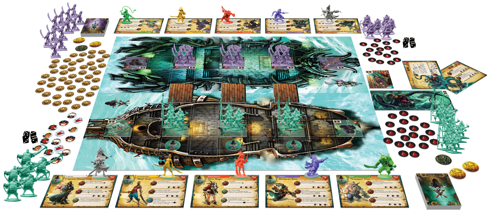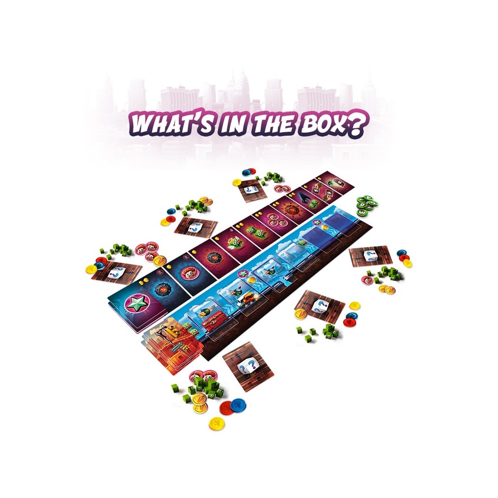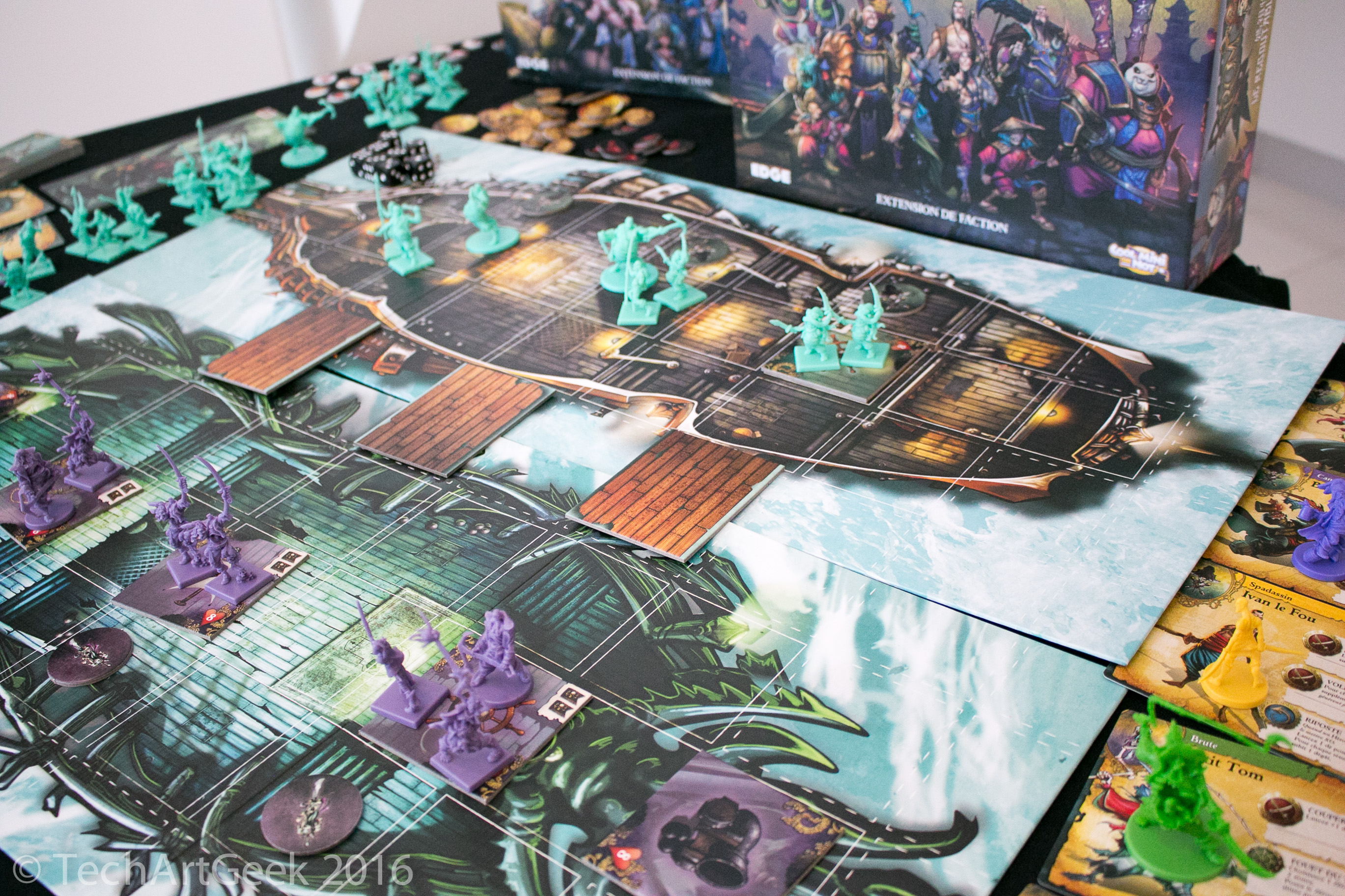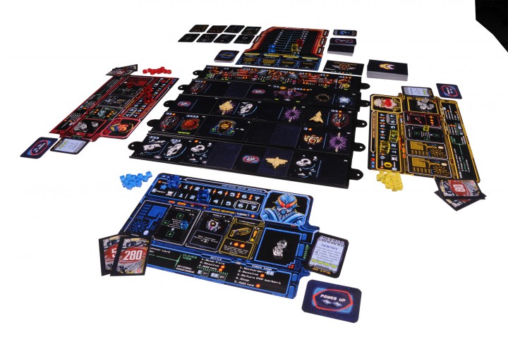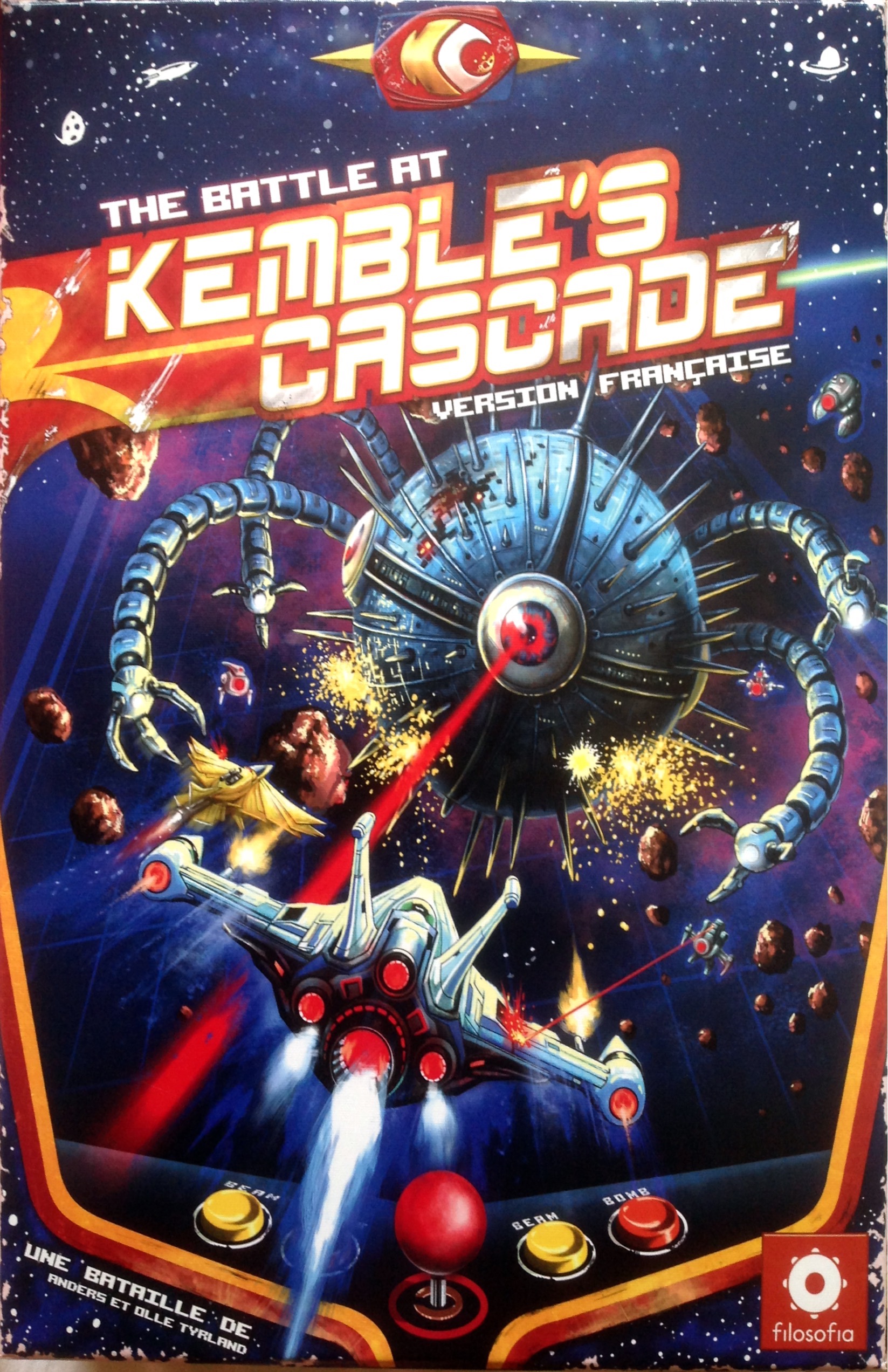 On reste dans le retro gaming avec ce jeu inspiré des vieux shoot em up des bornes arcade, comme Space Invaders. Le plateau de jeu se compose de plusieurs rail en plastique, avec des cartes ennemis, et à chaque tour, le rail du bas vient se mettre en haut, et fait apparaitre des nouveaux obstacles et ennemis. Ce système donne donc l’impression d’un défilement vertical, ce qui va permettre au Boss de fin de niveau d’apparaitre au fur et à mesure. The Battle at The Kemble’s Cascade est sorti il y a pas mal de temps, et je doute qu’il soit facile à trouver, et c’est bien dommage car il est excellent. Pour plus de détail ma review est ici.