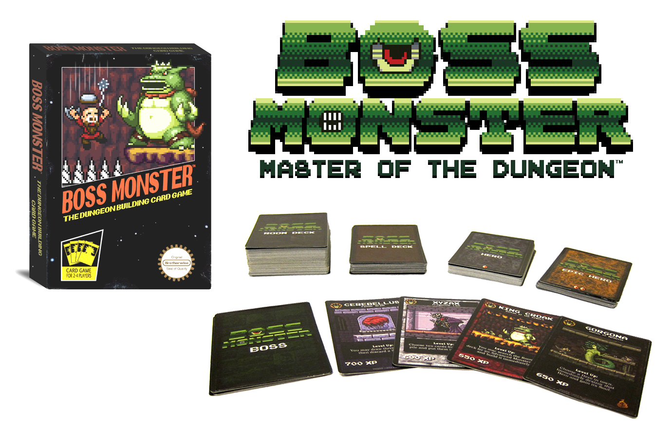 Boss Monster est un jeu de cartes qui s’inspire, qui transpire même le retro gaming. La boite ressemble à une vieille cartouche de NES, les extensions sont des boites de jeux Gameboy, l’ambiance 8 Bit règne. Dans Boss Monster vous incarnez un Boss de fin de niveau et vous devez construire un donjon truffé de piège afin d’éviter aux héros d’arriver jusqu’à vous. Plusieurs boites de base et 2 extensions sont disponible à l’heure actuelle. Si vous voulez savoir comment ça fonctionne exactement la review est ici.