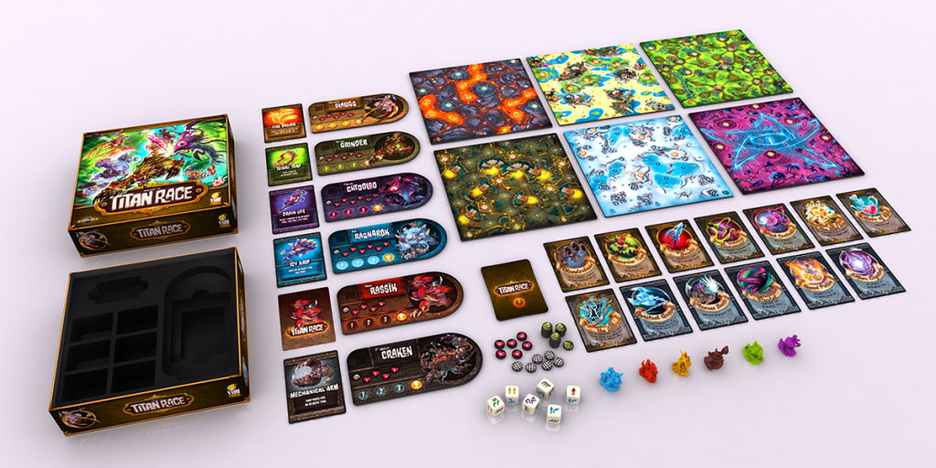 Titan Race est un jeu de Julian Allain, édité par Funforge, pour 2 à 6 joueurs, pour des parties de 20 minutes.