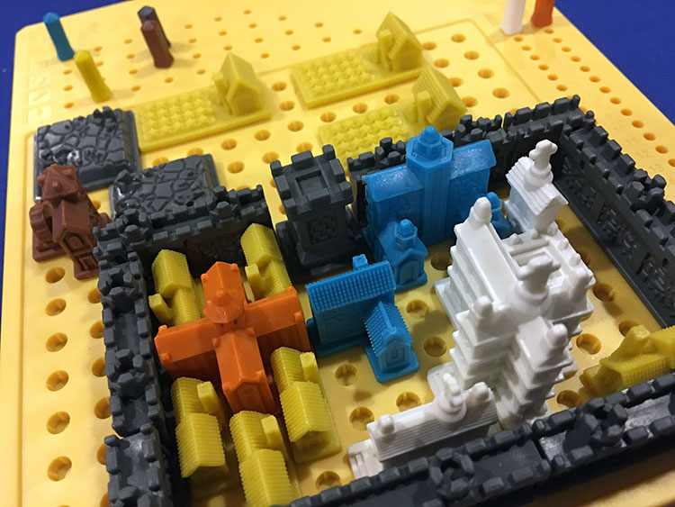 Une fois les 6 phases faites, on peut recommencer une nouvelle manche. La partie prend fin lorsque tout les jetons temps sont retournés et montrent un X. Et on retourne un jeton temps lorsqu’un type de bâtiment est épuisé.