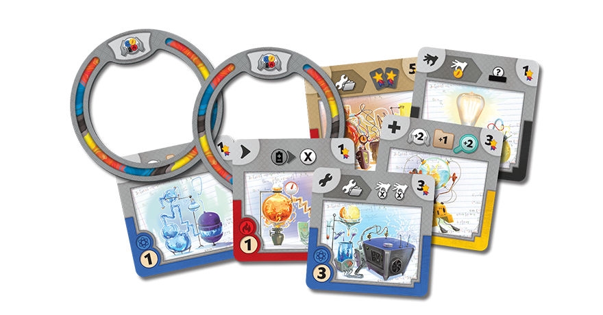 « Vous, les plus brillants esprits de cette génération, rivalisez d’ingéniosité pour bricoler, dans votre labo artisanal, le bidule le plus original et le plus puissant ! Saurez-vous maitriser les quatre énergies et échafauder les combos qui vous feront gagner le premier prix de cette compétition scientifique ? »