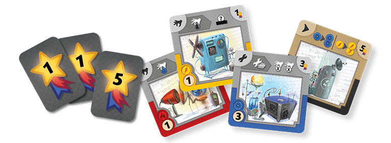 Lors d’une partie de Gizmos chaque joueur va effectuer une seule action à son tour, mais selon les cartes que vous allez prendre, cette unique action peut déclencher une réaction en chaine d’actions, et vous permettre donc de faire plus d’une action.