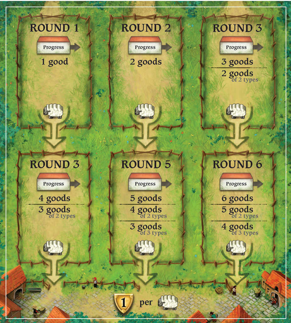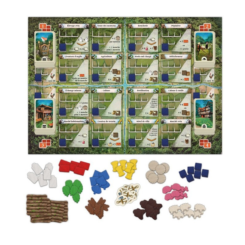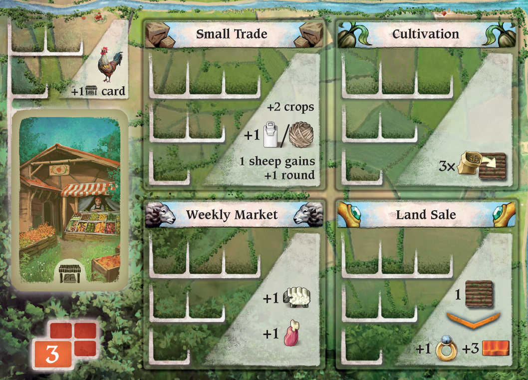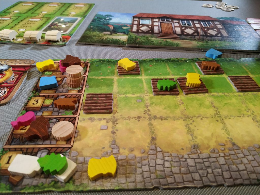 Produire des marchandises permet d’améliorer votre foyer rural, ce qui vous donne plus d’ouvriers, mais aussi des points en fin de partie. Les marchandises et les champs rapportent aussi des points, d’où l’importance de cultiver ses champs. Vous pourrez aussi acquérir de nouvelles cartes, que vous pourrez jouer pour avoir de bonus en début de manche, mais pour marquer des points en fin de partie également.