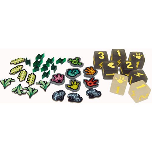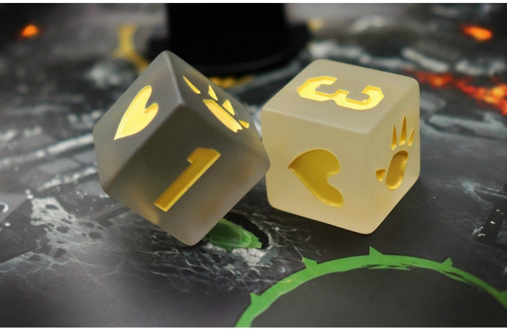 Qui dit Dark Edition dit forcement dominante de noir !! Toutes les illustrations ont été refaites, les monstres, les cartes, le matériel revu, les cubes d’énergie vert en plastique sont devenus des petits éclairs, les dés ont également été refait, et sont légèrement transparent. La boite a aussi été refaite, et fait beaucoup penser à Godzilla, il y a du verni sélectif sur beaucoup d’élément de la boite, et franchement ça claque sévère !!
