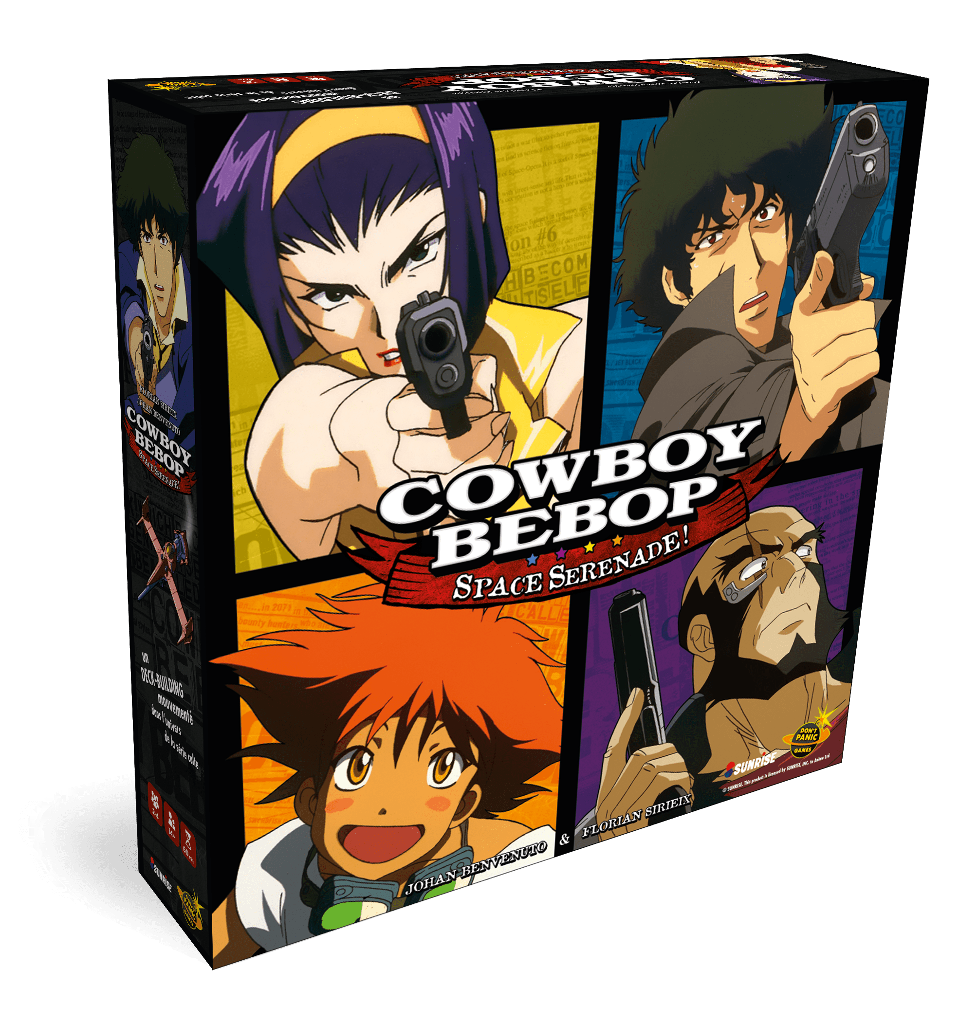 Cowboy Bebop – Space Sérénade est un jeu de Florien Sirieix & Johan Benvenuto, édité par Don’t Panic Games, pour 1 à 4 joueurs, pour des parties de 30 à 60 minutes.