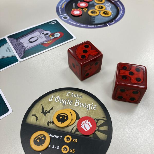 La manière dont on va jouer va dépendre des personnages que l’on a choisi, car selon le personnage les pions fêtes de Noël rapporteront plus de points que les pions fêtes d’Halloween.