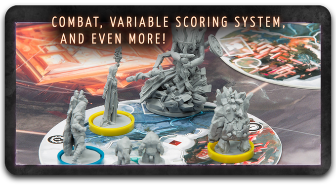 • Fin d’une ère : cette phase intervient lorsque la cinquième carte de région est révélée sur la piste des évènements. A ce moment là, on commence par la première carte région, et on regarde qui contrôle cette région. Le joueur qui contrôle la région prend les points de victoire qui correspondent à la région. vous continuez à résoudre les cartes de la piste évènement, et lorsque vous devez résoudre une carte monstre, le monstre attaque toutes les figurines présentes sur son ile.