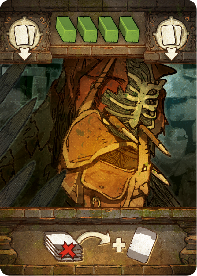 - La nouvelle donne : le joueur qui n’a pas remporté le duel pioche 3 cartes, en conserve 2 et donne la carte restante à son adversaire, puis on révèle une nouvelle tuile dalle.