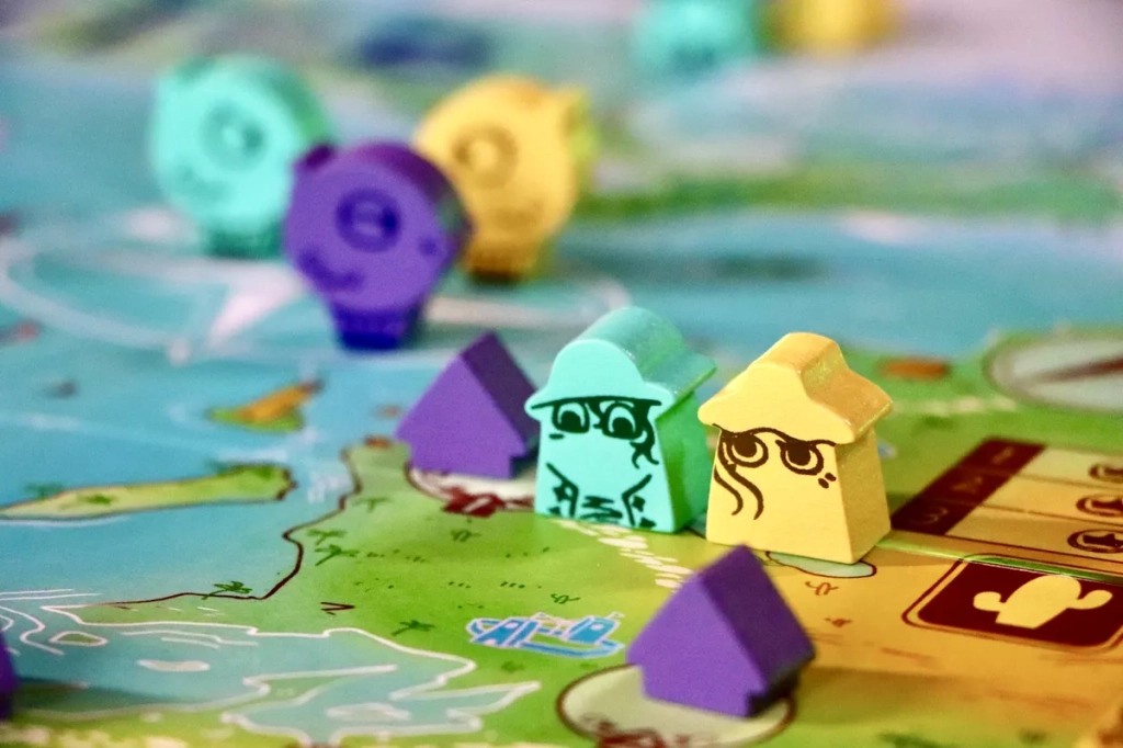 - Repos : c’est la fin de la manche, on va renvoyer tous les explorateurs au point de départ de la piste sauf pour les explorateurs qui ont construit des refuges, ceux la sont placés sur les refuges les plus éloignés, ce qui permet d’avancer plus rapidement sur la prochaine manche. On remet tous les jetons action dans le sac, on défausse toutes les cartes non recrutées et on en révèle 3 nouvelles de chaque couleur, et on ajuste l’ordre du tour, le joueur ayant le plus de points sera le premier joueur de la manche suivante.