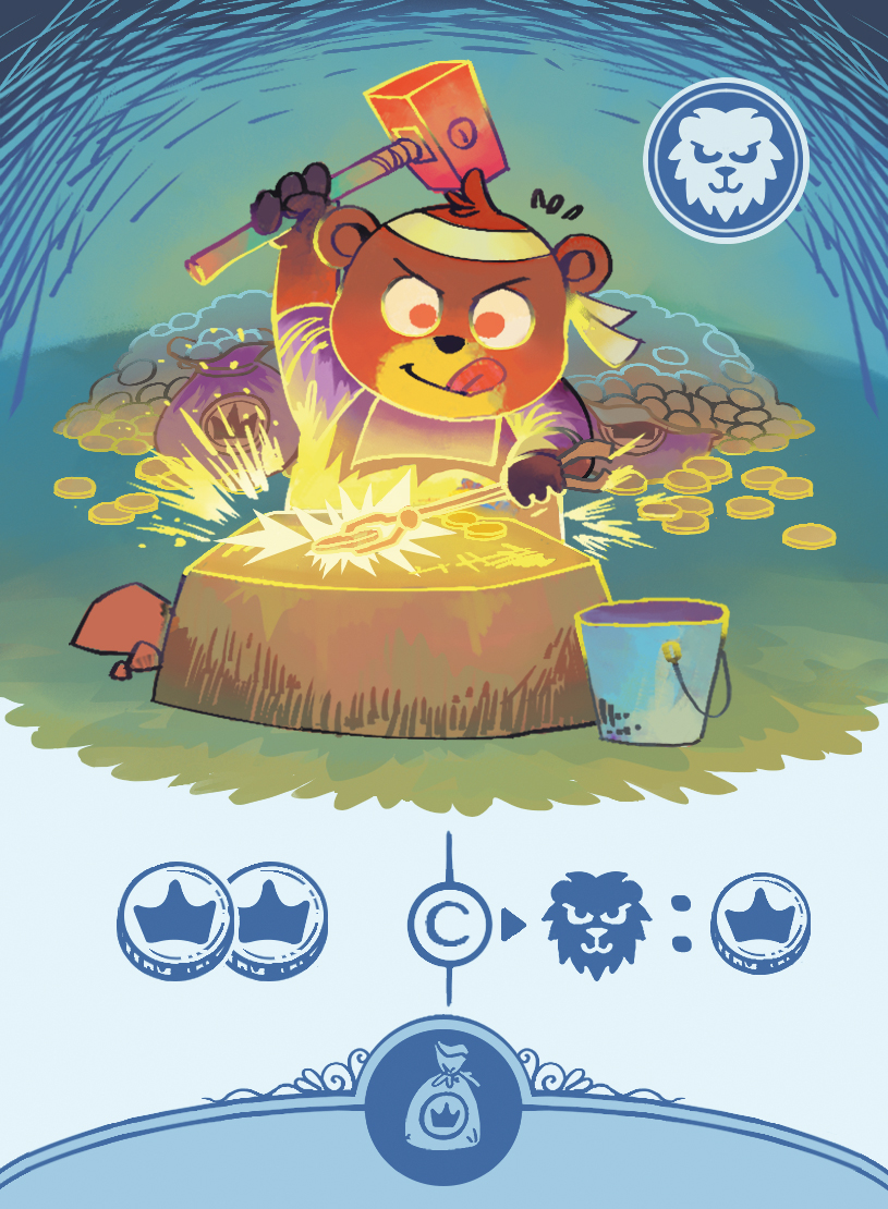 - Recrutement : durant cette phase vous allez prendre une cartes parmi les 5 types de cartes présents sur le plateau de jeu. Soit en piochant 2 jetons action dans le sac, soit en le prenant au centre ville. Lorsque vous piochez dans le sac, vous choisissez 1 des 2 jetons, celui ci sera placé sur le paquet de cartes qui lui correspond et vous pourrez choisir une carte parmi les 3 disponibles. Le jeton restant va dans le centre ville. Lorsque vous prenez un jeton dans le centre ville, vous prenez celui que vous voulez, mais vous n’en prenez qu’un seul, ici pas de hasard, vous contrôlez votre choix. Chaque type de cartes a sa spécialité, les marchands (bleu) permettent de gagner des points de victoire et de gagner des points durant la phase de revenu. Les bâtisseurs (jaune) permettent essentiellement de construire des refuges. Les soldats (rouge) font gagner des points en fin de partie selon les refuges qui ont été construit. Les aventuriers (violet) vous font avancer sur les différentes pistes d’exploration du plateau, ca aura son importance durant la phase de revenu. Et enfin les artisans (vert) qui vous font gagner des ressources, qui permettront d’activer les effets de vos plateau perso, effet qui seront de plus en plus nombreux en fonction du nombre de refuges qui vous aurez construit au cours de la partie.