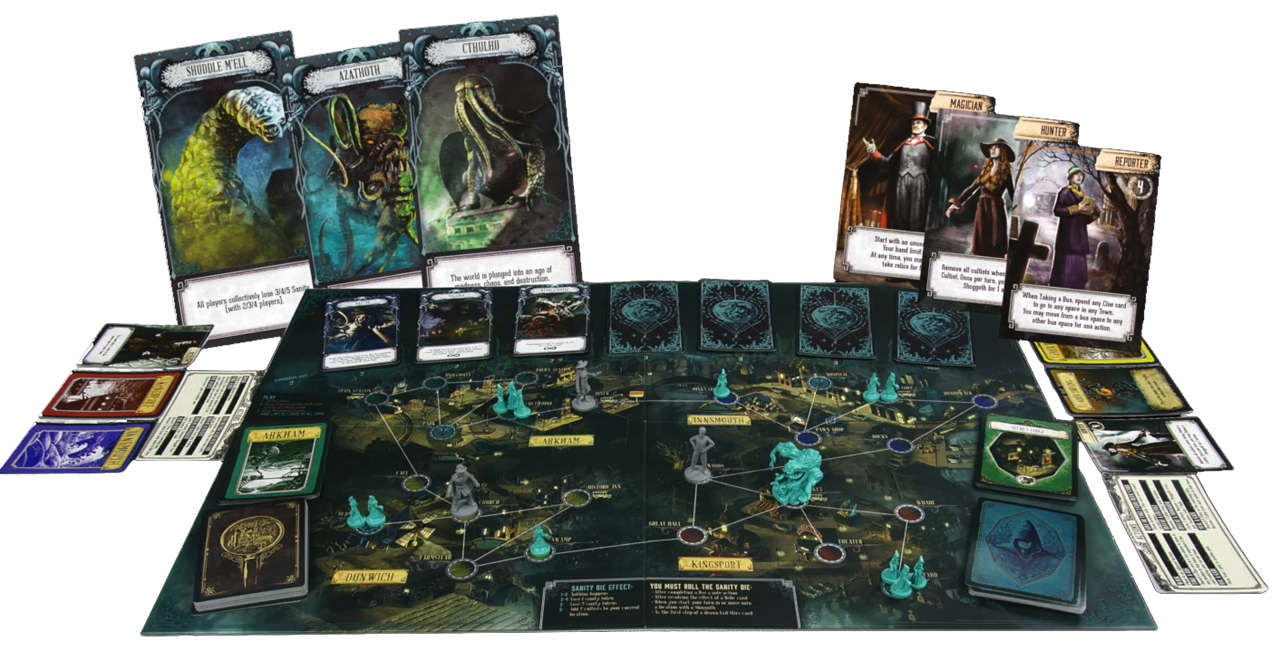 Horreur à Arkham le jeu de cartes est un très bon jeu, qui mise vraiment sur l’ambiance et l’immersion, pour les fan de Lovecraft, mais pas que. La review est disponible ici.