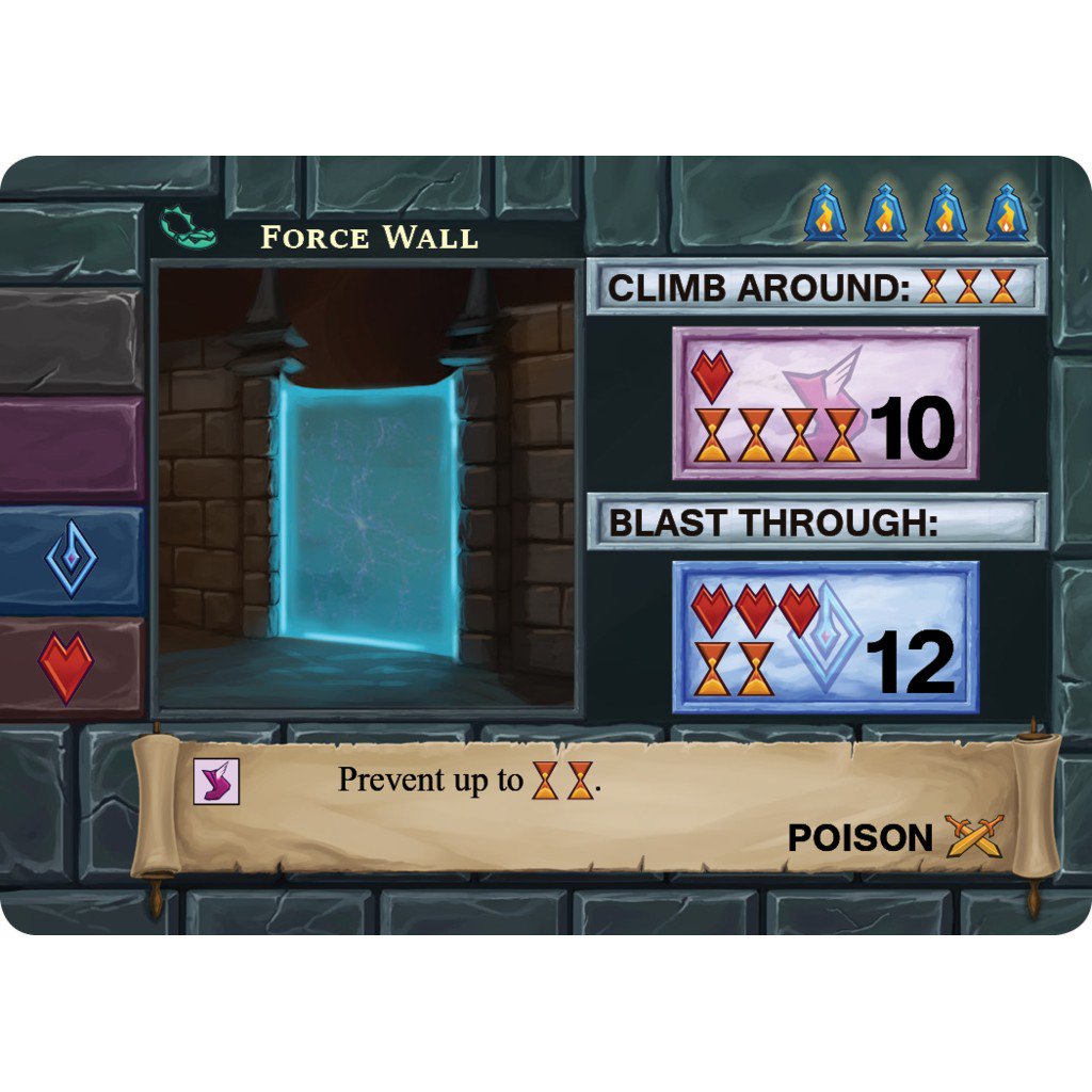 One Deck Dungeon est un jeu d’exploration de donjon, donc à chaque tour vous allez déjouer des pièges et affronter des monstres.