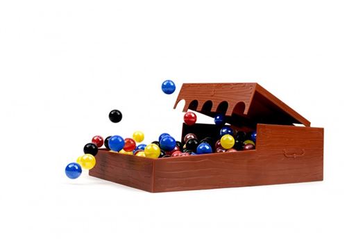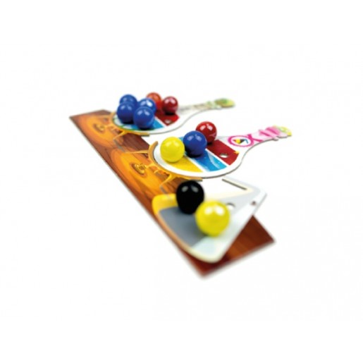 Le principe de Potion Explosion est plutôt simple, à chaque tour vous devez prendre un ingrédient dans le distributeur, et c’est tout. Ce qui est plutôt malin dans Potion Explosion, c’est justement le système des explosions. Dans le distributeur il y a donc 80 billes, de 4 couleurs différentes. Les billes sont dans des glissières inclinées, donc si vous prenez une billes au milieu de la glissière, les billes vont descendre d’un cran et rentrer en collision. Si 2 billes de mêmes couleurs rentrent en collision, vous provoquez une explosion, et vous pouvez donc les prendre. Ce petit système vous permet de faire de gros combos de prise d’ingrédients, puisque si vous calculez bien votre coup, il n’est pas rare de prendre pas loin de 10 billes d’un coup.