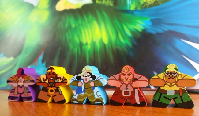 - Lancer les meeples : durant cette phase, vous lancez vos meeples comme vous lancerez des dés. Chaque meeple a 2 faces différentes, une face aventurier (noir) et une face archéologue (blanc). La couleur des meeples détermine les actions que vous pourrez effectuer, si un meeple tombe sur sa tranche, il est considéré comme un joker, et s’il est debout c’est un joker et vous gagnez en plus 1 pièce d’or.