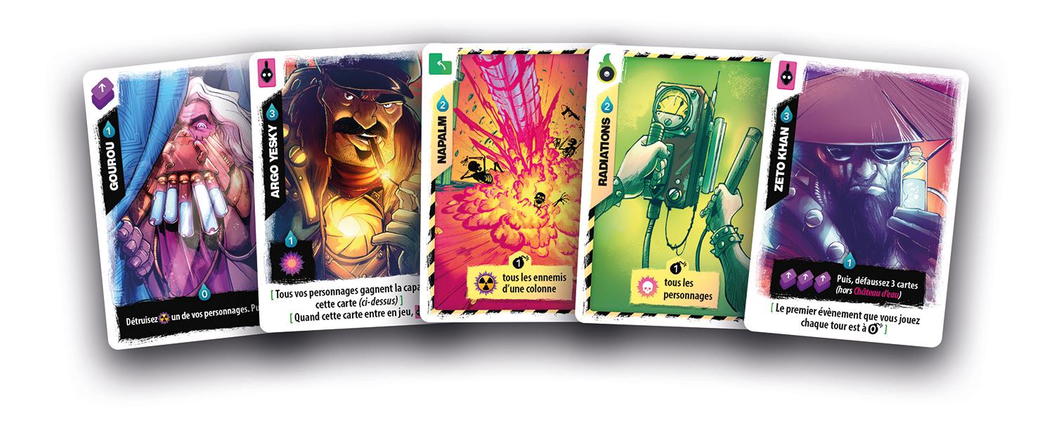 Radlands est clairement un jeu « pan dans tes dents » le but ici étant de poutrer l’adversaire, et tous les moyens sont bons. Il va falloir protéger vos base en jouant des personnages, ne pas hésiter à jouer des évènements et à utiliser votre eau de la meilleure manière, car qu’on se le dise, l’eau c’est le nerf de la guerre.