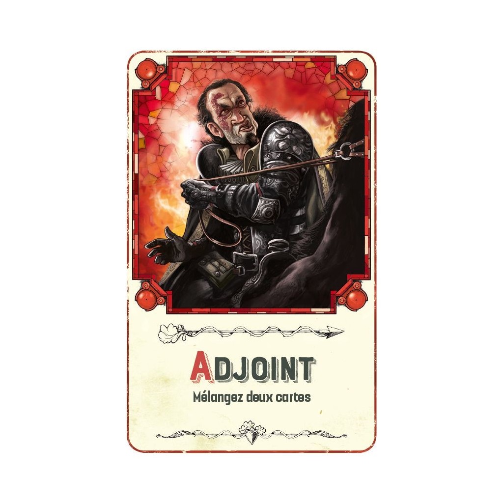 • L’Adjoint : il y a deux adjoint dans le jeu, et les adjoints permettent de prendre deux cartes de l’aire de jeu, des les mélanger sans les regarder et de les replacer sur les emplacements vides.