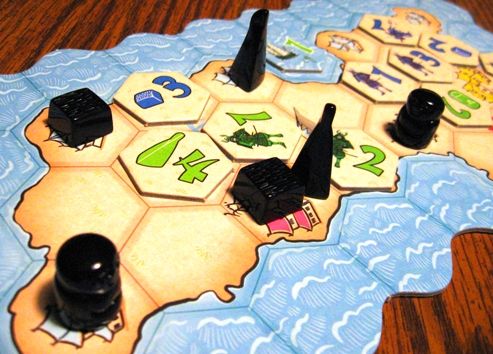 - Vérifier les captures : lorsqu’un pion Caste est entouré de toute part par des tuiles domination, on vérifie qui est majoritaire en terme de domination en ce qui concerne le pion Caste. Le joueur majoritaire prend le pion Caste et le place derrière son paravent. S’il y a une égalité, et que personne ne peut prendre le pion Caste, celui ci est retiré du jeu et placé prés du plateau.