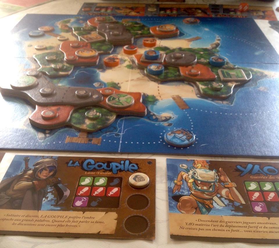 Dans SOL, chaque joueur incarne un, ou plusieurs, membre d’un des 2 équipages, et il va falloir localiser le temple où se trouve l’Idole, et la ramener à votre bateau. Après une mise en place plutôt rapide, tout les membres d’un équipage vont effectuer leurs actions, et ce sera ensuite le tour de l’équipage adverse. Car SOL se joue en équipe, 2 équipages s’affrontent pour trouver l’Idole.
