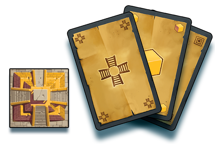 Comment on trouve l’Idole, car oui j’en parle, mais ça reste un peu flou pour tout le monde, et je vais donc remédier à ça. L’Idole se trouve dans un des huit temples placés sur le plateau. Pour trouver l’Idole il faut jouer des cartes, il y a 3 types de cartes : celles qui indiquent la forme du temple, celles qui indiquent la couleur du temple, et celles qui indiquent le nombre d’escalier qu’il y a autour du temple.