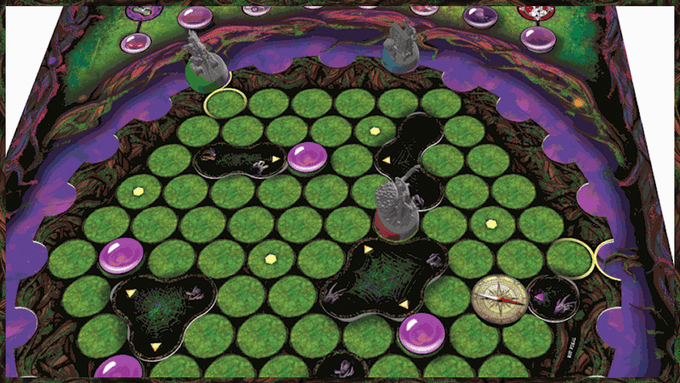 Le principe de The Faceless repose sur le système des aimants. Les figurines Faceless et BILLYGOAT sont aimantés, et agissent sur la boussole. Donc selon l’orientation des figurines, chaque mouvement de la boussole va faire bouger l’aiguille rouge, et donc vous mettre dans des situations parfois compliqué. Car sur le plateau il y a des obstacles, et si vous devez passer sur un obstacle et que vous n’avez pas de pions souvenir disponible en votre possession, et bien la partie est perdu. Le seul moyen de traverser un obstacle c’est d’utiliser des souvenirs. Les souvenirs ont aussi chacun un effet, qui peut être utilisé durant le tour d’un joueur, mais il faut savoir en garder en réserve justement pour les obstacles.