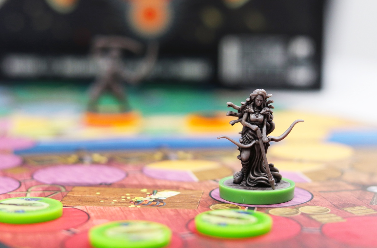 Unmatched est un jeu d’affrontement tactique et asymétrique. Chaque Héro a son propre deck, et donc une stratégie bien différente, il est donc intéressant de jouer avec les 4 histoire de savoir lequel vous convient le mieux. Dans Unmatched il faut bien sur poutrer celui d’en face, mais aussi bien gérer ses déplacements (on ne peut pas traverser une case contenant un adversaire), histoire de ne pas se retrouver bloquer par l’adversaire et son acolyte. Il y a aussi une petite notion de hasard du au tirage des cartes, mais c’est asses minime pour ne pas vous pourrir une partie. Il peut être intéressant aussi de bien observer la main de son adversaire afin de l’attaquer au moment où il n’a plus beaucoup de cartes en main, du coup moins de choix pour se défendre et aussi la garantie de ne pas se faire attaquer sur le tour suivant, car votre adversaire fera surement une manœuvre pour piocher.