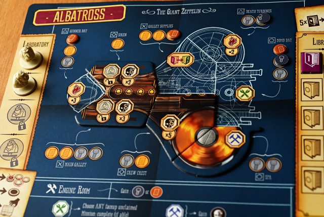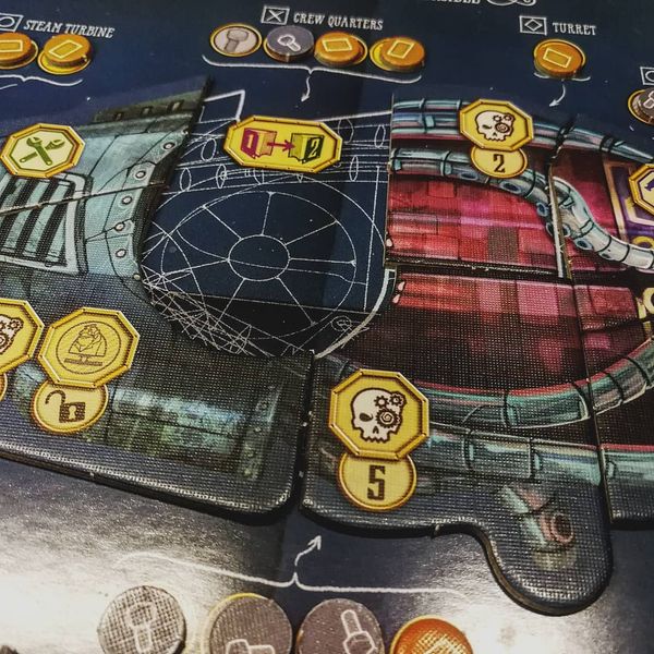 Lorsque vous obtenez un boulon ou une plaque de cuivre, vous devez les placer immédiatement sur votre plateau machine. Cela va vous permettre de construire les éléments de votre machine, qui vous donnera des points de victoire, et autres avantages pour le reste de la partie.