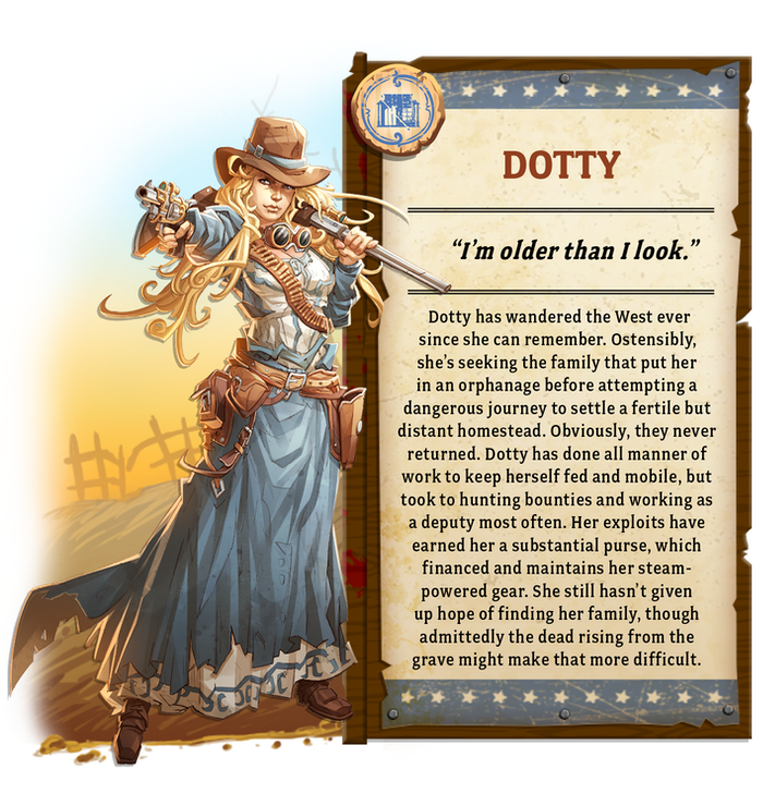« Des tas de gens sont partis à la conquête de l’Ouest. Pour des tas de raisons, L’aventure, l’opportunité, la fuite. Et parfois même, juste histoire de se dégourdir les jambes et de voir le monde. Ouais M’sieur, c’était une terre vierge, pleine d’audace et de possibilités pour ceux qui étaient prêts à se remonter les manches et à bosser dur. Mais personne ne s’attendait a voir débarquer ces satanés Zombies !!! »