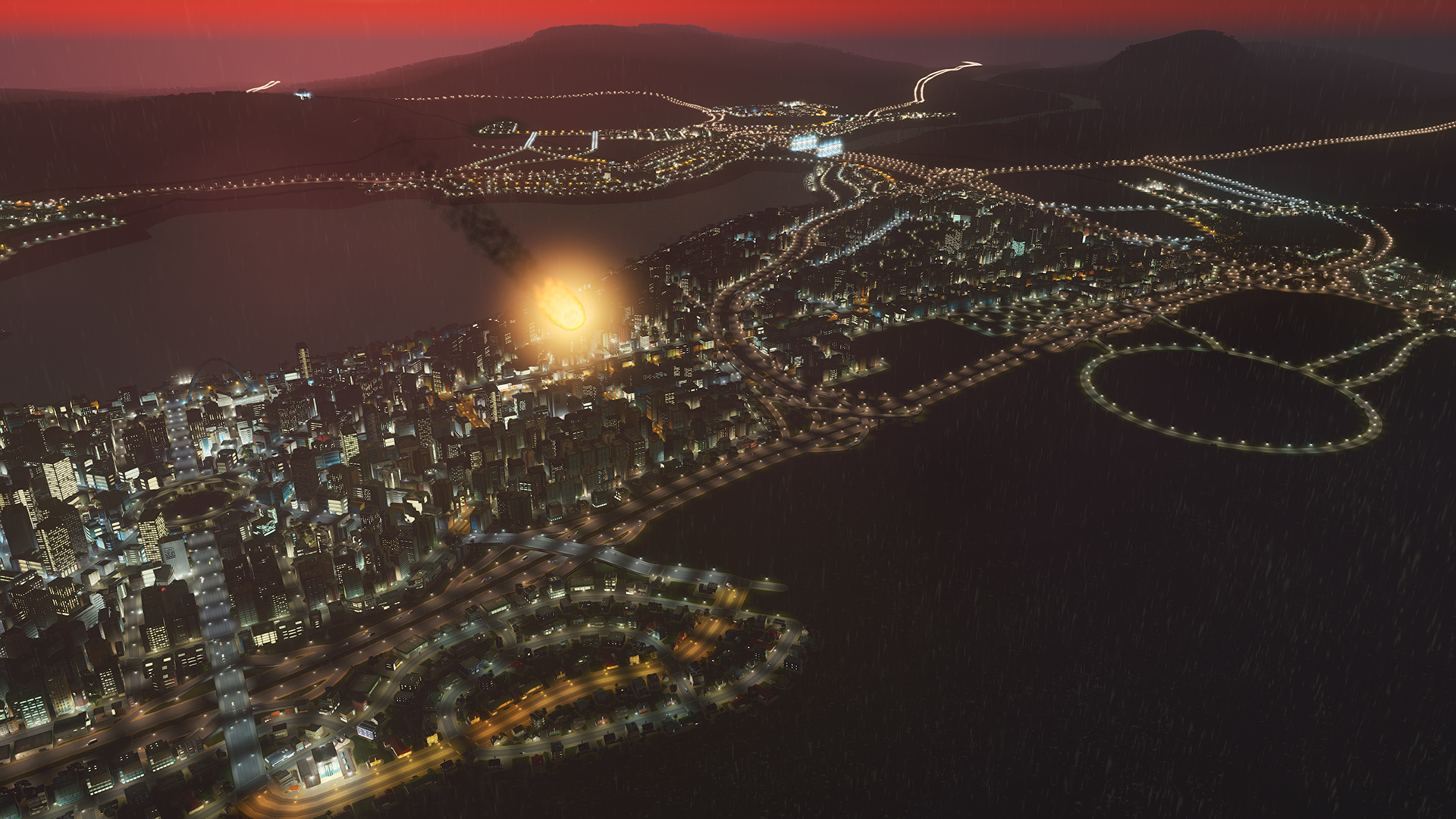 C’est donc après la gestion de la nuit et la neige que Colossal Order a décidé de détruire nos villes faites avec amour. Natural Disasters sera donc une extension payante, disponible cette année (estimée à 10 / 15 euros) qui vous permettra de détruire vos villes comme vous voulez. Au-delà du plaisir que cela peut procurer, ces dégâts doivent apporter une nouvelle dimension à Cities: Skylines. C’est bien beau de voir sa ville prospérer mais ce n’est pas le crime ou quelques incendies qui viendront mettre du piment dans vos parties une fois le système maitrisé. La démo présentée montrait un astéroïde tomber en beau milieu des beaux quartiers. Résultat : des dizaines de morts et des bâtiments en miettes. Mariina Hallikainen et Karoliina Korppoo, respectivement CEO et game designer chez Colossal Order, présentaient ce moment comme étant une nouvelle opportunité de gameplay, un nouveau challenge.