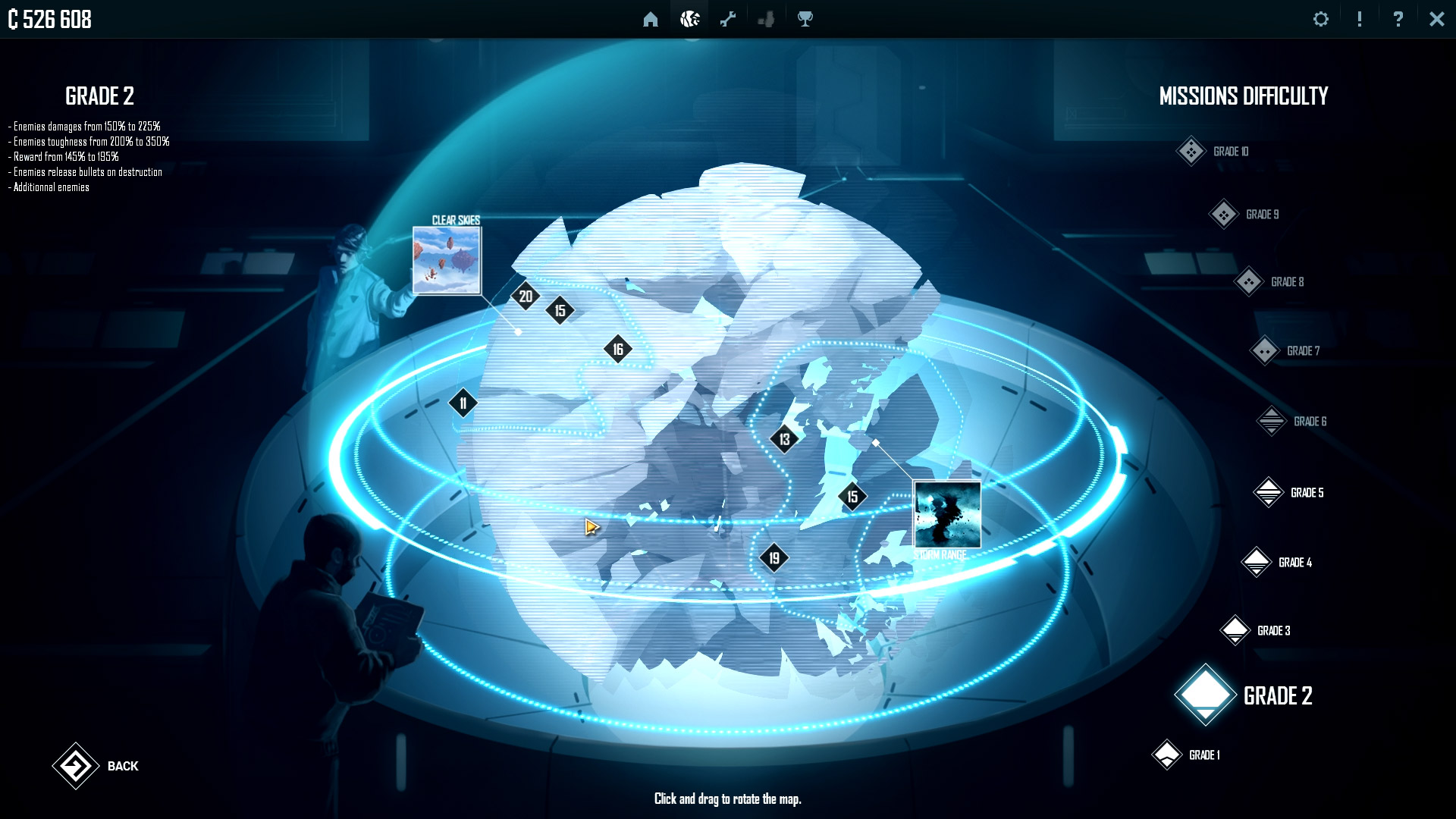 Une fois ce choix réalisé, il est temps de se lancer dans une aventure qui durera entre 5 et 10 heures en ligne droite pour débloquer de l’équipement peu évolué dans un premier temps. En effet tout comme le célèbre Hack ‘n’ slash, terminer le jeu ne suffira pas à contenter les chasseurs du meilleur score et des meilleures combinaisons d’équipement. On nous annonce un niveau aux alentours de 25 lors de la première fin alors que le jeu vous permet de monter jusqu’au niveau 100, chaque niveau allouant des points à attribuer dans diverses caractéristiques de vos vaisseaux. Les objets récupérés peuvent aussi jusqu’au niveau 65, chacun ont une rareté (avec une couleur à la Diablo) ce qui promet énormément d’heures à tirer dans tous les sens et à chasser du loot.