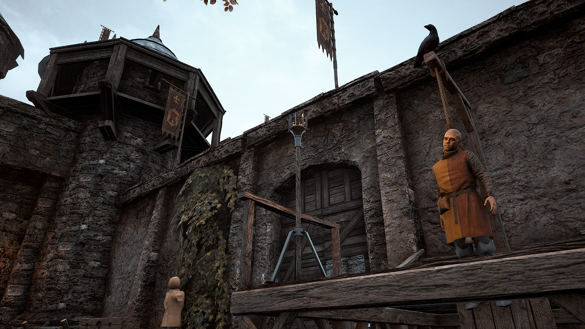 Ce qui m’a gêné c’est de jouer à un titre multijoueur tout seul. Difficile de se faire un avis alors que plus de quarante autres humains font vivre le serveur en créant des maisons ou en instaurant des lois à respecter sous peine de châtiment. James a mentionné vouloir créer des prisons ou mêmes des choses plus tordues mais d’époque comme les carcans ou les cages de fer. La survie ne semble pas trop pénalisante mais les centaines de PNJ ne sont pas vraiment visibles et les combats sont peut-être trop simplistes pour être « kiffant ». Ma grosse déception, peut-être, est sa réalisation globale qui n’est pas top, ce n’est pas très beau (en tout cas, rien à voir avec les captures qu’on m’a données qui sont affichées ici, surement qu’une machine de guerre a été utilisée pour les faire) et le jeu souffre d’un sérieux problème d’ergonomie et d’interface qu’il faudra corriger. Après ce court essai, il m’est impossible de vérifier si toutes les promesses de The Black Death sont respectées, la prudence serait donc de rigueur. Le jeu est encore en early access (contre 20€), il a donc tout le temps de murir avant sa sortie qui arrivera surement en 2017.