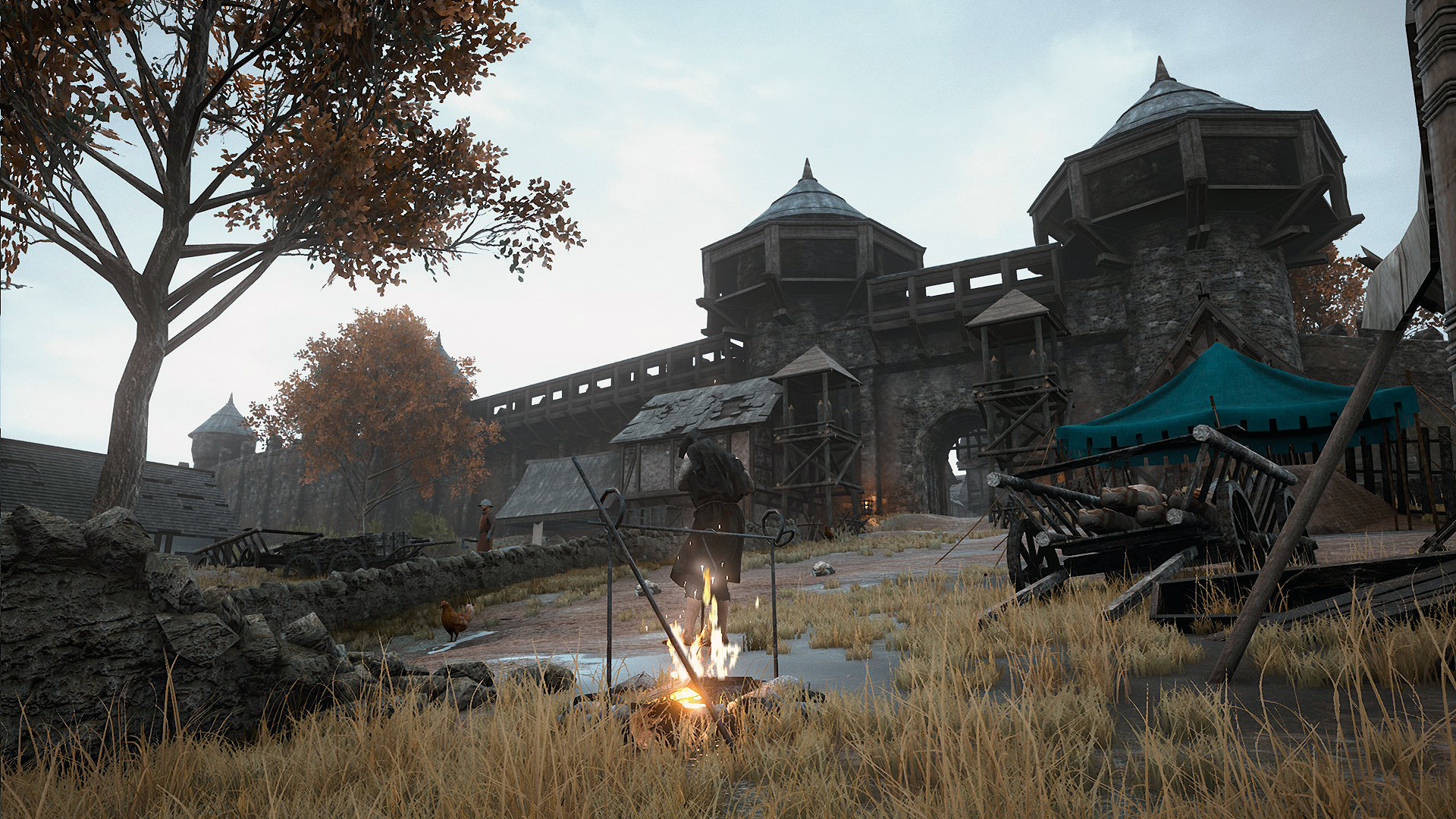 C’est donc une petite équipe de moins de dix personnes, principalement des Anglais, ils sont fous ces Anglais, qui s’est mise en tête de créer un jeu multijoueur de survie dans un monde médiéval. Un si gros jeu pour une si petite équipe c’est un pari risqué. Nous pouvons donc incarner un avatar durant le quatorzième siècle alors que la peste ravage une région peuplée de cinquante joueurs maximum et de centaines de personnages non joueurs. Les rôles à choisir sont plutôt intéressants car sortant de la triplette gagnante soldat, voleur, mage. Le soldat est bien sûr de la partie mais on pourra aussi croiser des fermiers ou des mendiants. Chaque classe ayant ses propres capacités et évolutions, il faut donc bien choisir son personnage en début de partie. Si vous avez l’âme de devenir un magnifique chevalier en armure pour défendre la veuve et l’orphelin, une carrière militaire s’ouvre à vous. Si vous préférez faire pousser du blé et gagner votre vie avec, direction l’amour est dans le pré.