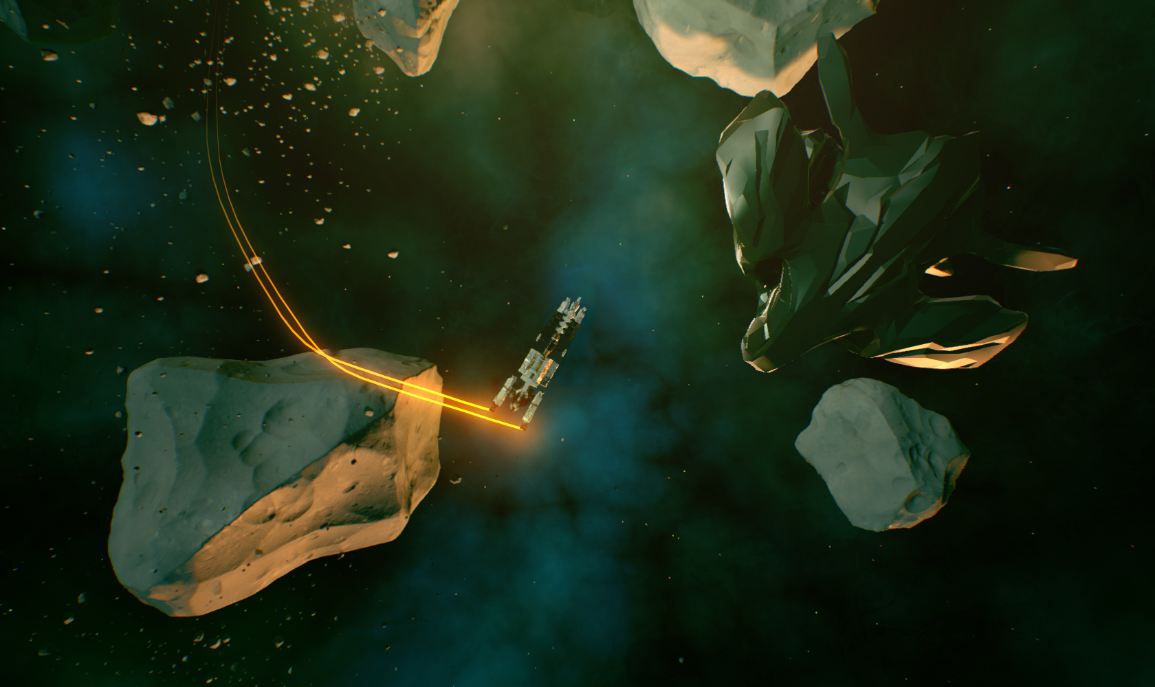 Le déplacement des vaisseaux, le principal et le petit module d’entrée atmosphérique, se fait simplement à la manette à la manière d’Asteroids avec une physique totalement générée de la propulsion à l’attraction terrestre. Vous pouvez donc aller n’importe où dans l’espace et effectuer des mises en orbite facilement grâce à un système de tracé de trajectoire bien pensé. Et si l’envie de partir loin, un warp et des portes de voyage interstellaire ont été ajoutés pour explorer d’autres morceaux de la galaxie. Mais avant de réussir à se déplacer facilement, il va falloir veiller au bien être de notre véhicule.